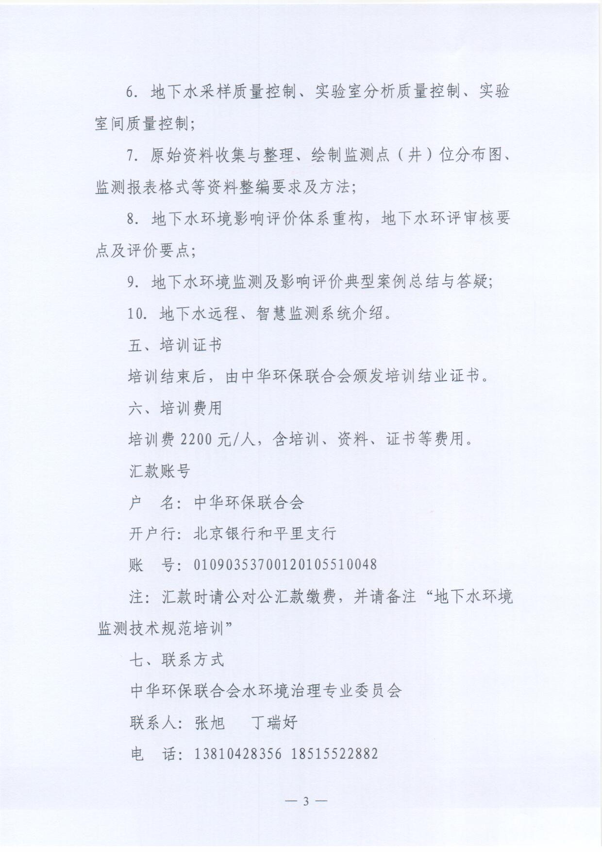 关于举办《地下水环境监测技术规范》(HJ 164-2020)宣贯及地下水监测评价技术培训班的通知
