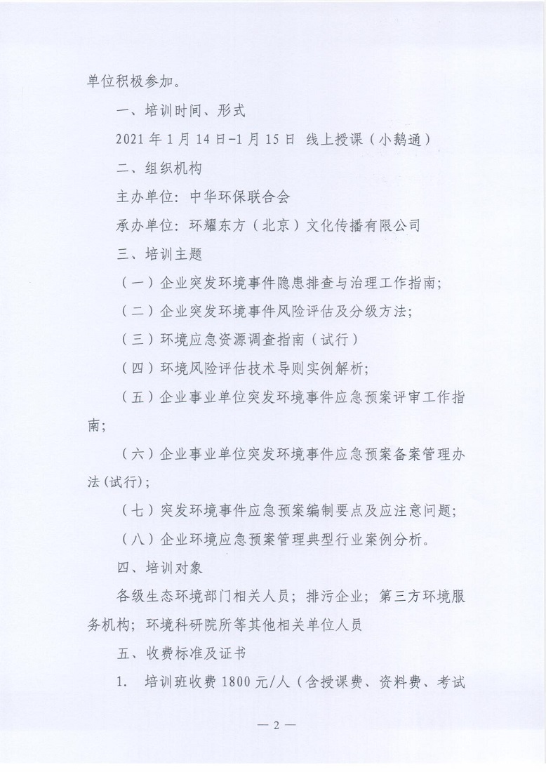 关于举办2021年第1期“环境应急预案编制及评审从业人员”专业技术岗位人才培训班的通知