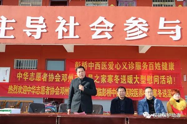 感谢中华环保联合会环境与健康专业委员会、中国权益保护网运营中心及志愿者们,你们为我镇老人们捐赠衣物、食品,送来温暖,这种爱心奉献的义举,值得我镇干群学习和发扬!”彭桥镇镇长陈吉东在活动仪式上发表了热情洋溢的致辞。