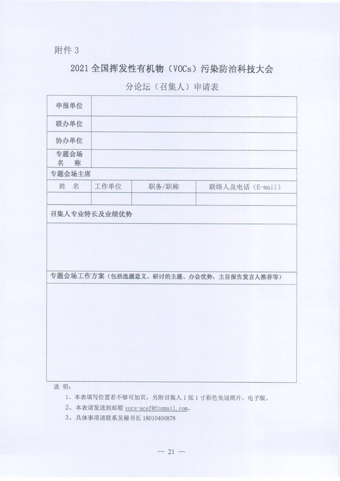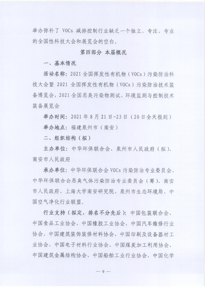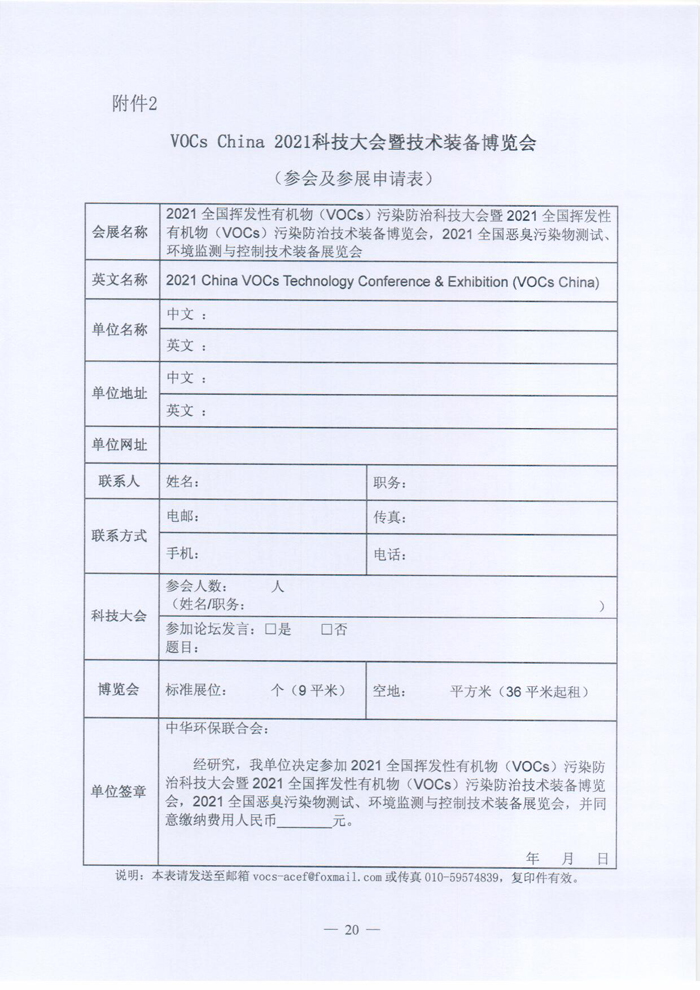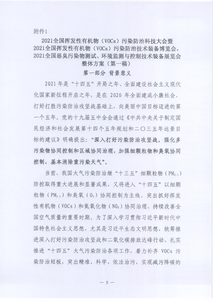 关于举办“2021全国挥发性有机物(VOCs)污染防治科技大会暨2021全国挥发性有机物(VOCs)污染防治技术装备博览会,2021全国恶臭污染物测试、环境监测与控制技术装备展览会”的预通知