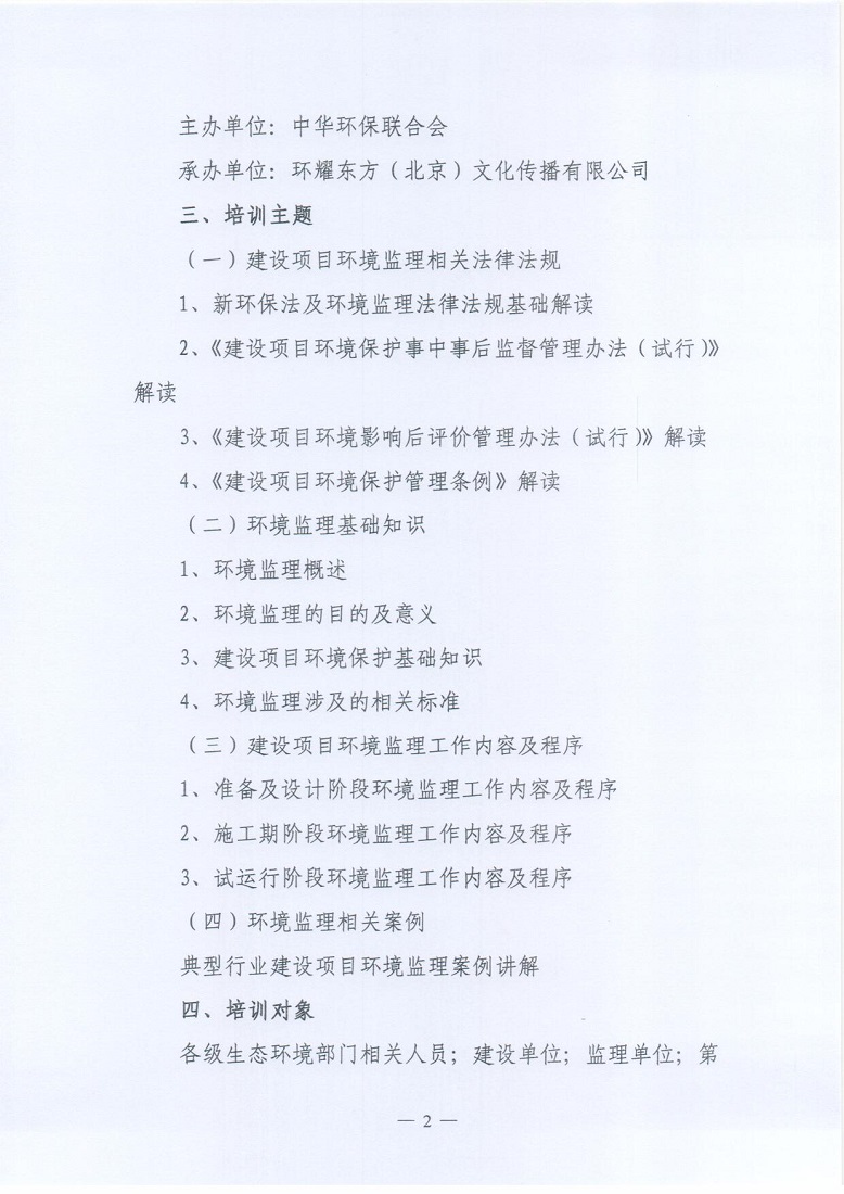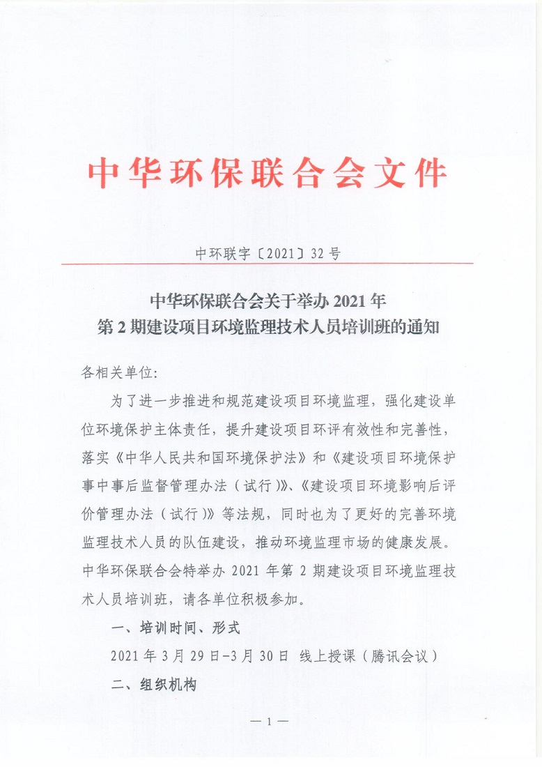 关于举办2021年第2期建设项目环境监理技术人员培训班的通知