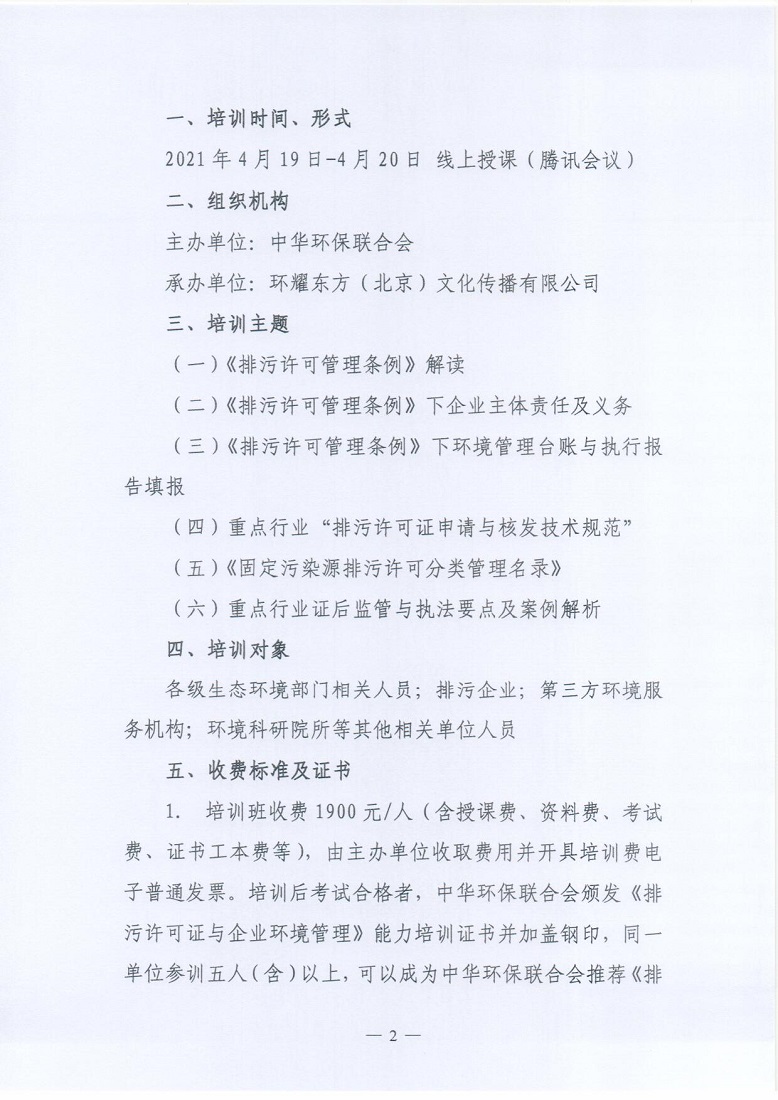 关于举办第4期排污许可证与企业环境管理培训班的通知