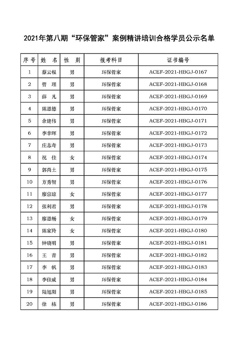 2021年第八期“环保管家”案例精讲培训合格学员公示