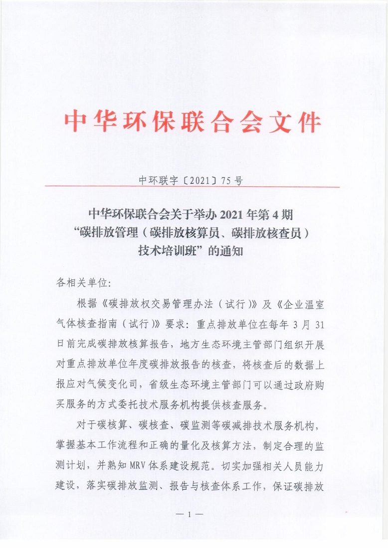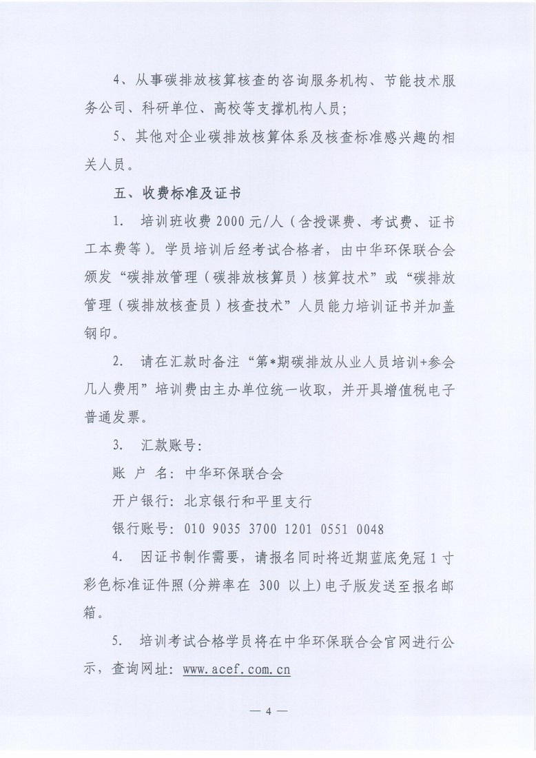 关于举办2021年第4期“碳排放管理(碳排放核算员、碳排放核查员)技术培训班”的通知