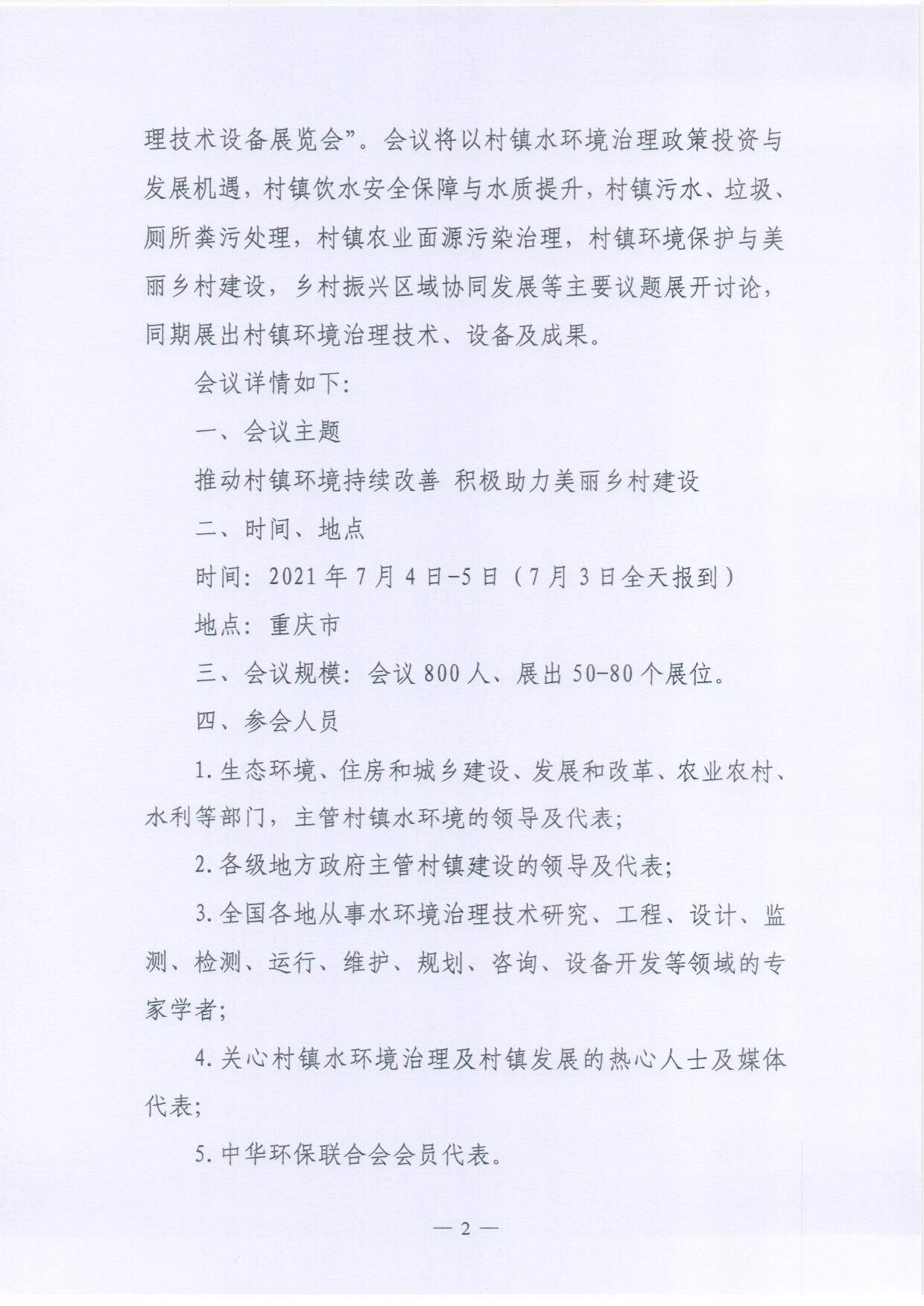 关于召开“2021村镇水环境治理产业与发展论坛暨村镇环境治理技术设备展览会”的通知