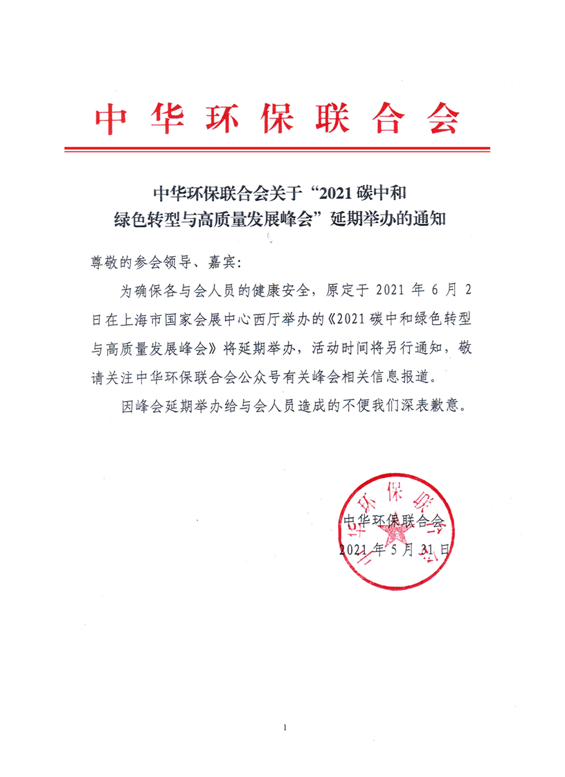 关于“2021碳中和绿色转型与高质量发展峰会”延期举办的通知