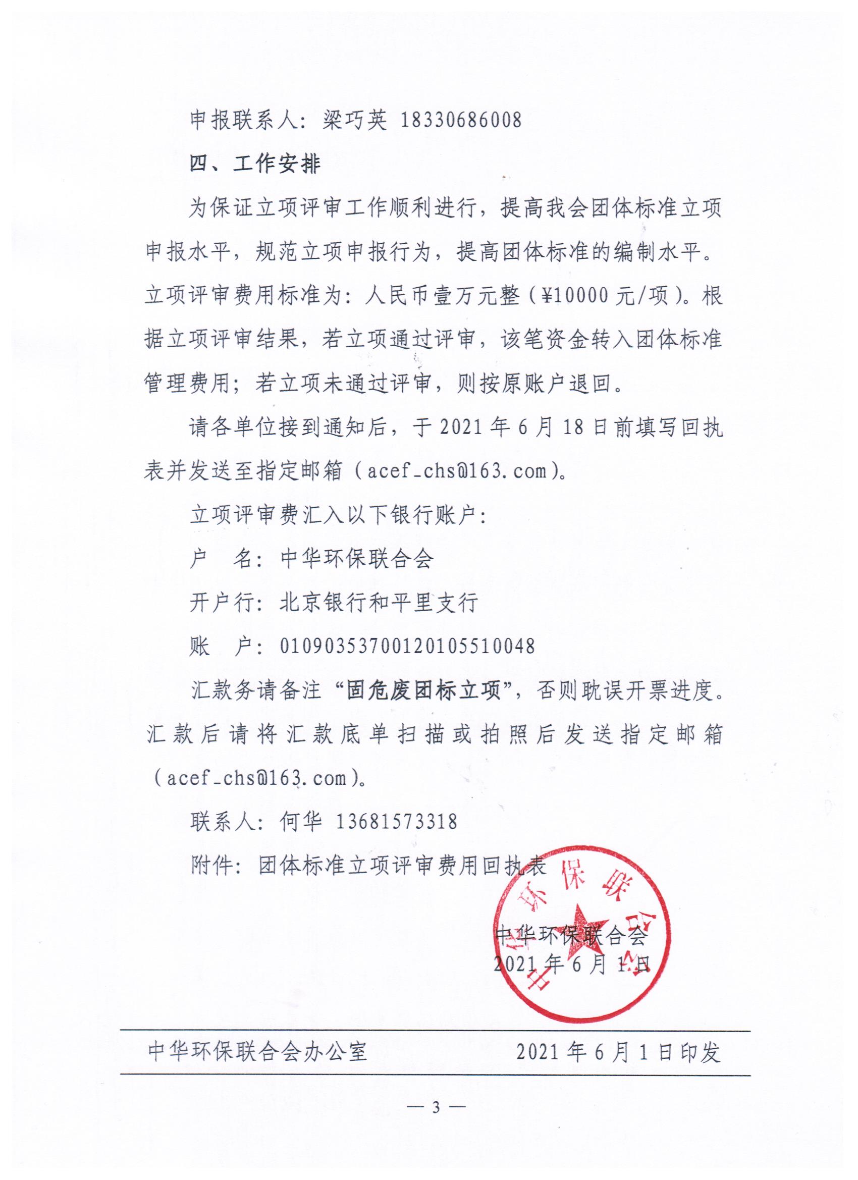 关于组织2021年固危废及土壤污染治理团体标准立项评审工作的通知