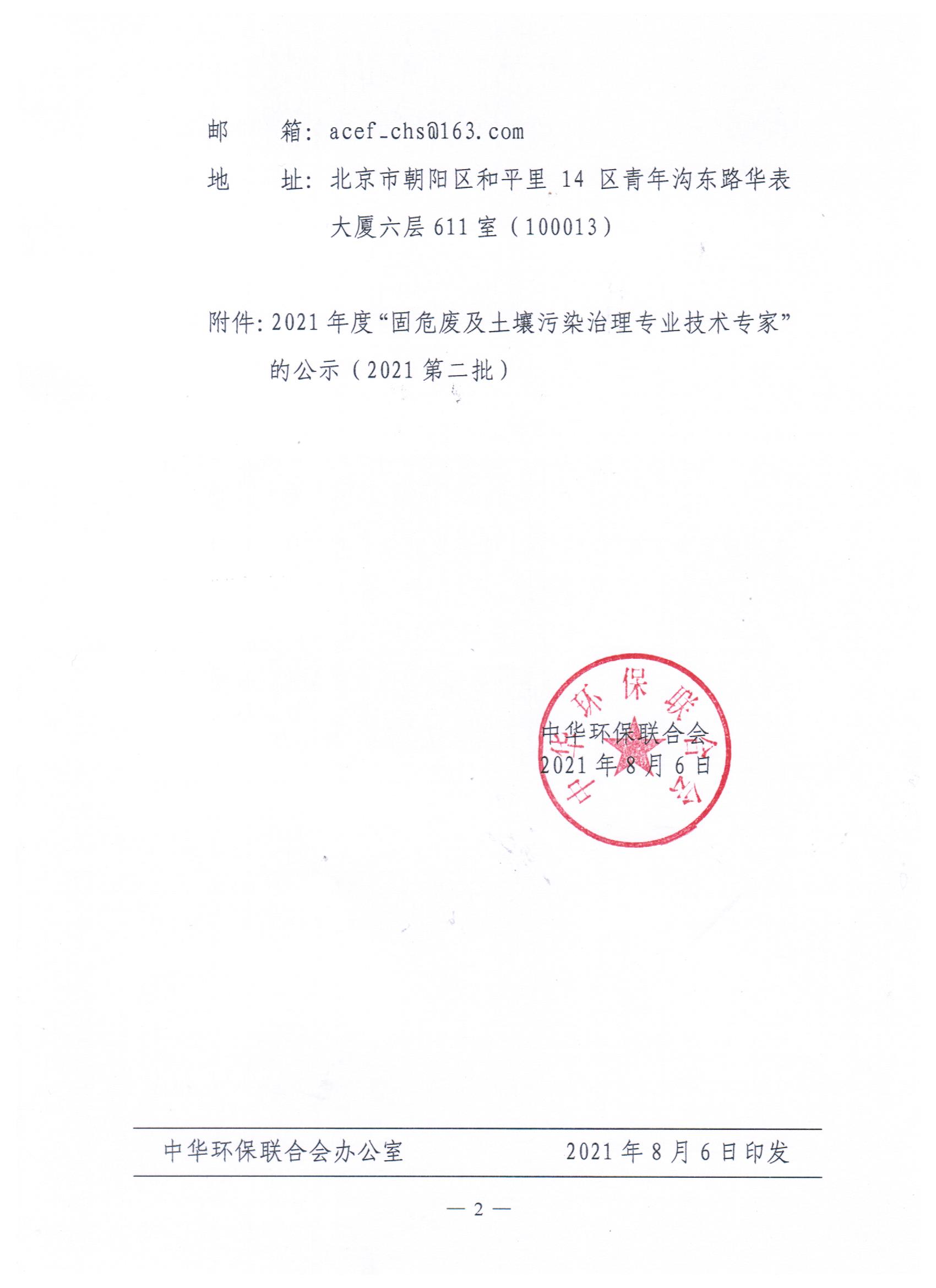 关于入库“固危废及土壤污染治理专业技术专家”的公示(2021第二批)