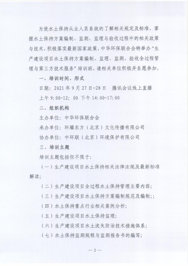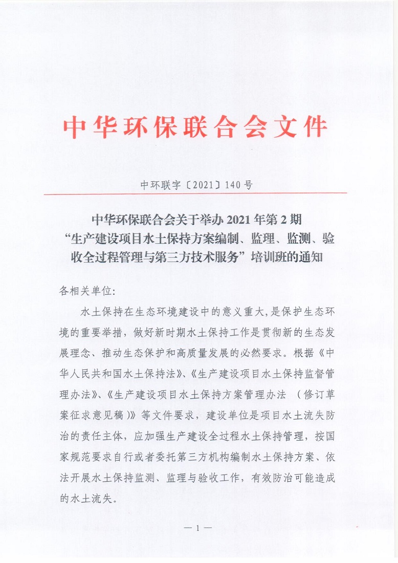 关于举办2021年第2期 “生产建设项目水土保持方案编制、监理、监测、验收全过程管理与第三方技术服务”培训班