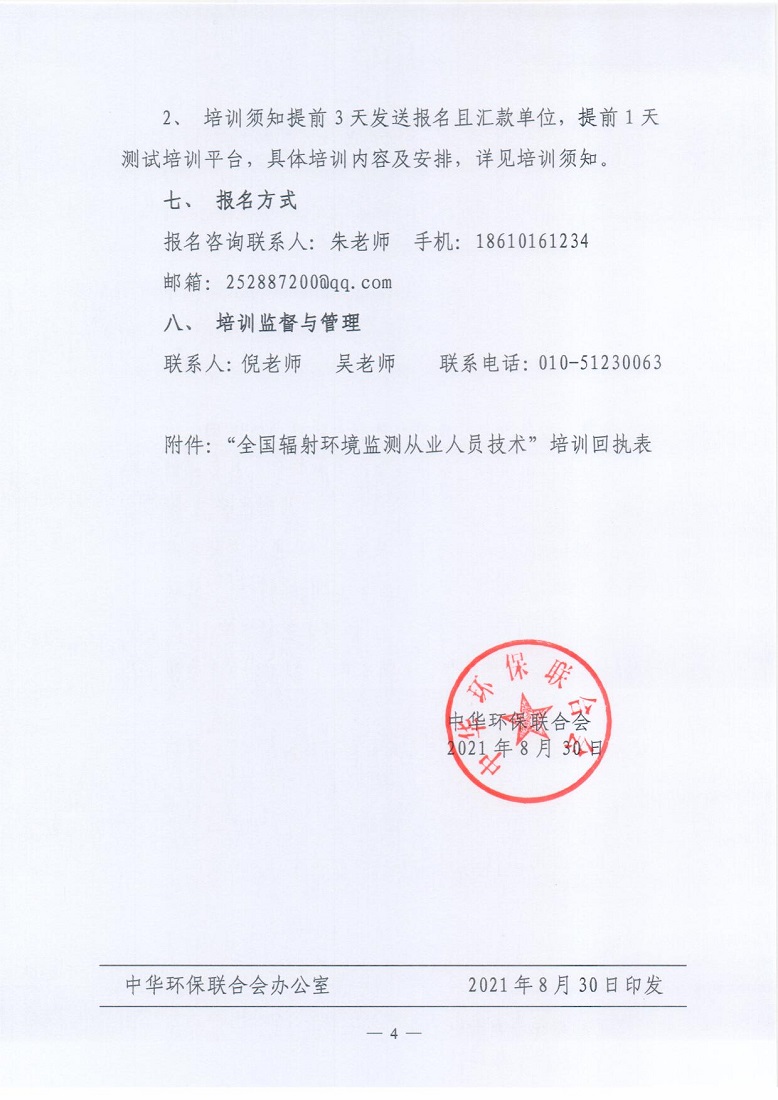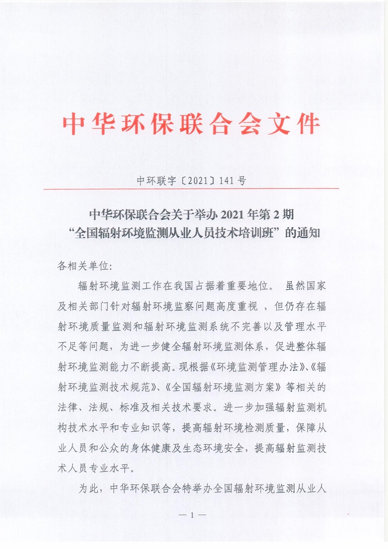 关于举办2021年第2期“全国辐射环境监测从业人员技术培训班”的通知