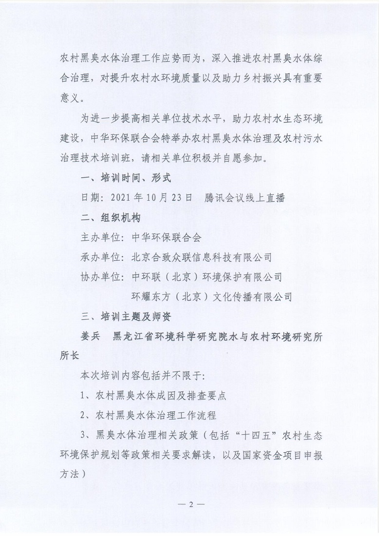 关于举办2021年第1期农村黑臭水体治理及污水治理技术培训班的通知