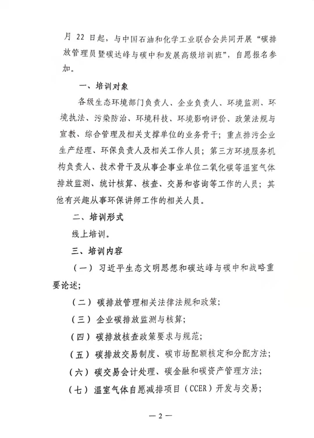 关于举办碳排放管理员暨碳达峰与碳中和发展高级培训班的通知