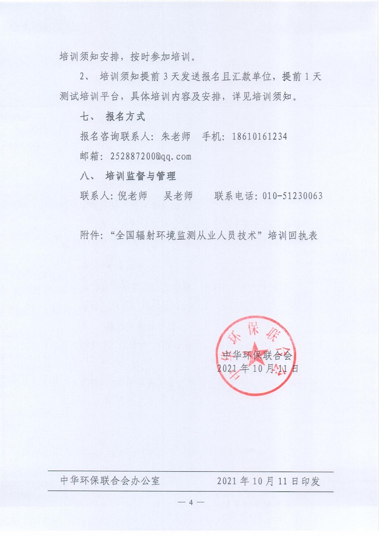 关于举办2021年第3期“全国辐射环境监测从业人员技术培训班”的通知
