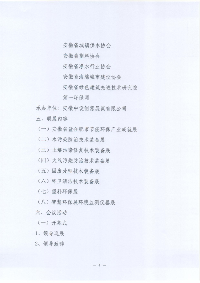 展会包含安徽省暨合肥市节能环保产业成就展、水污染防治技术装备展、土壤污染修复技术装备展、大气污染防治技术装备展、固废处理技术装备展、环卫清洁技术装备展、塑料环保展、智慧环保展、环境监测展等八大展区。同期还将举办数十场专业会议论坛,其中重点包括院士峰会、长三角G60科创城市生态环境局长座谈会、2021全国生态文明与污染防治攻坚案例分享会、安徽省节能环保产业“双招双引”推介会、重大环保项目信息发布与对接会等,政府领导、院士专家、名企名家,共聚一堂、共谋发展、共话未来!