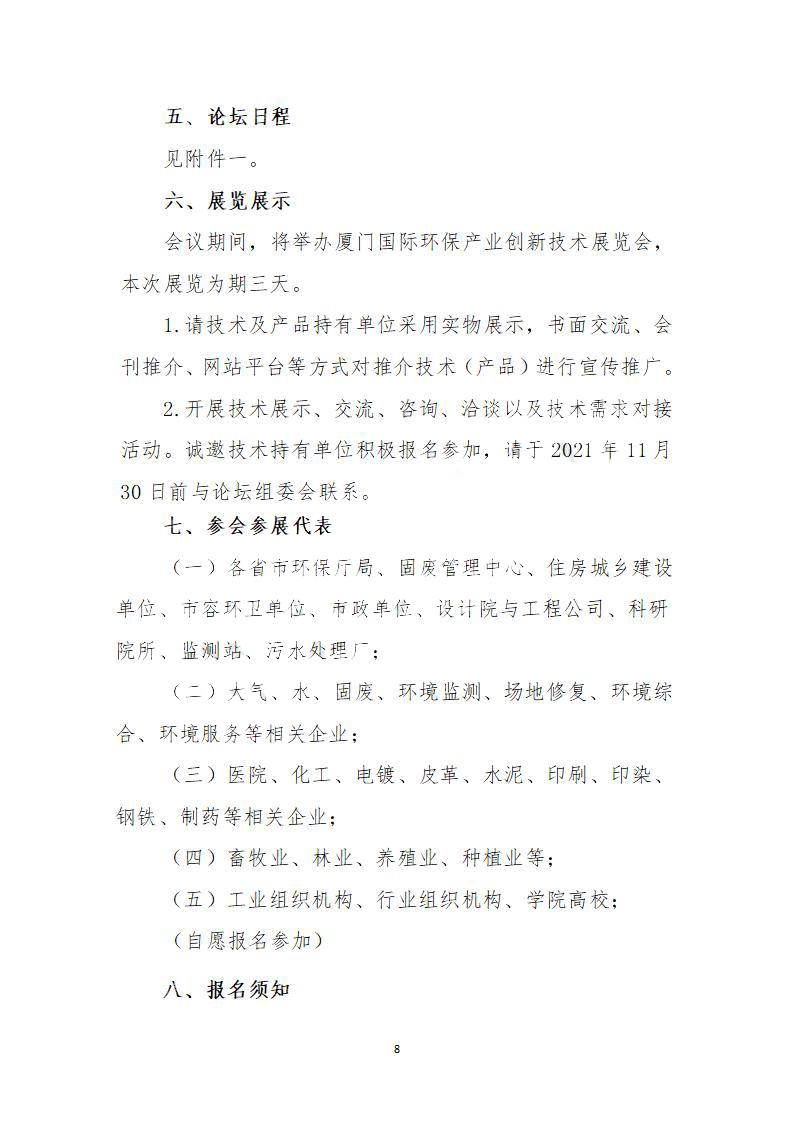 附件1:2021年海峡城市环境高峰论坛暨厦门国际环保产业创新技术展览会日程概览