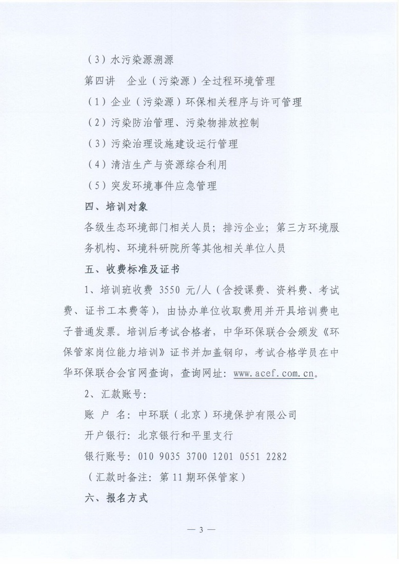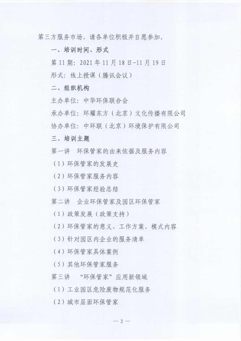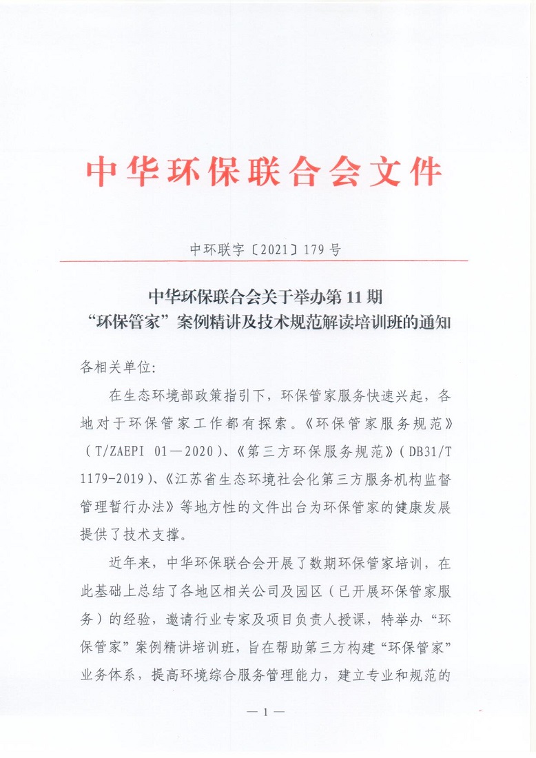 关于举办第11期“环保管家”案例精讲及技术规范解读培训班的通知