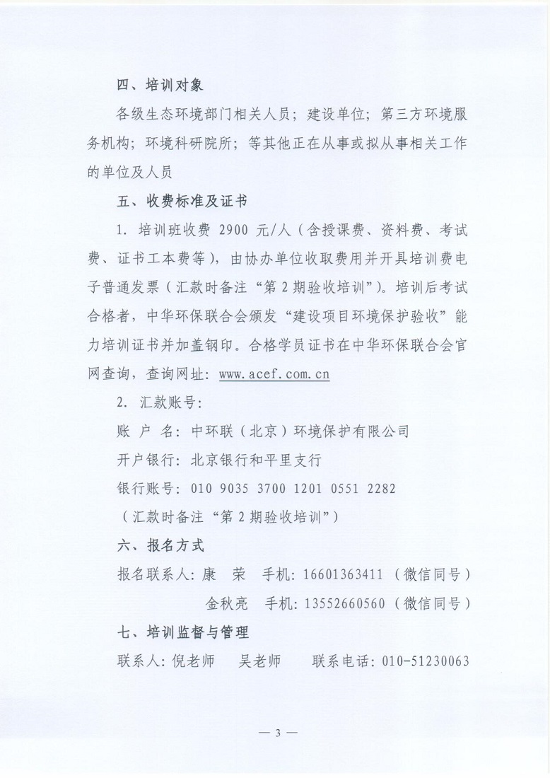 关于举办2021年第2期 建设项目环境保护“三同时”及竣工环境保护自主验收培训班的通知
