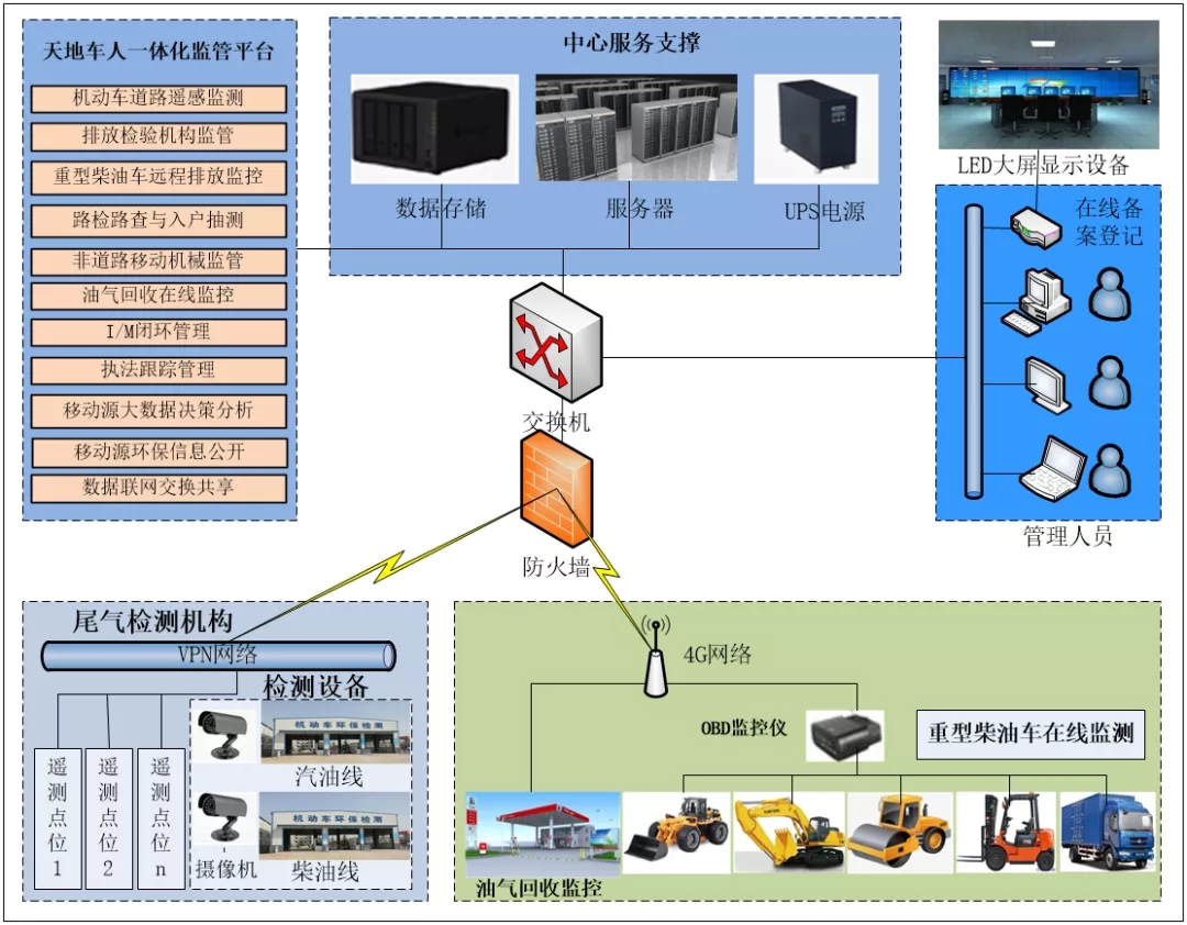 移动源“天体车人”一体化综合监管平台涵盖了遥感监测、定期排放检验、重型柴油车远程排放监控、路检路查与入户抽测、非道路移动机械监管、油气回收在线监控以及I/M闭环管理等业务,由于机动车污染控制工作政策性强、职责部门多、涉众面广,单靠环保一家单打独斗难以开展,必须建立政府综合管控、多部门协同配合的工作机制,形成“环保取证、公安执法”模式。有利于发挥机动车污染防治数据全天候全方位的数据收集和大数据分析优势,对海量监测数据进行记录、筛查、核准、处罚推送,为有效降低机动车污染总量建立奠定技术评价和监控基础。
