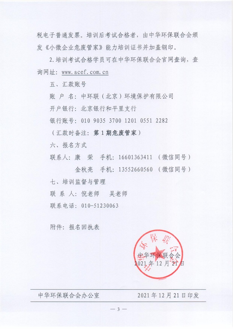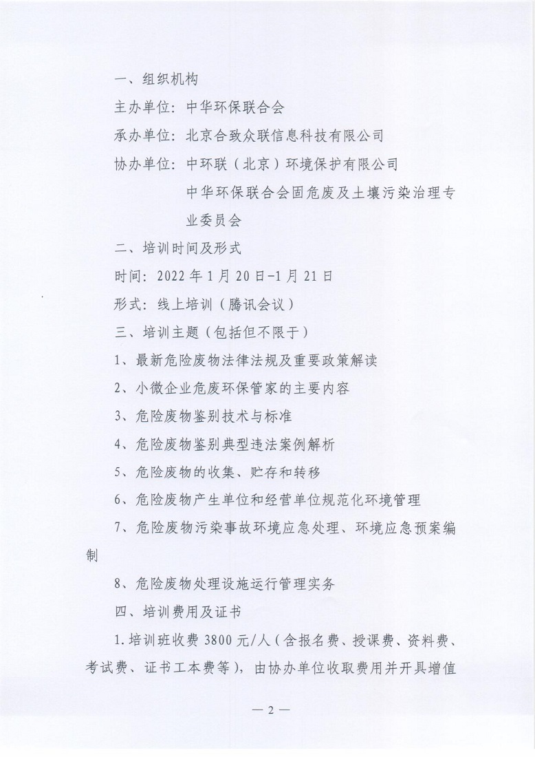 关于举办2022年第1期“小微企业危废环保管家”培训班的通知
