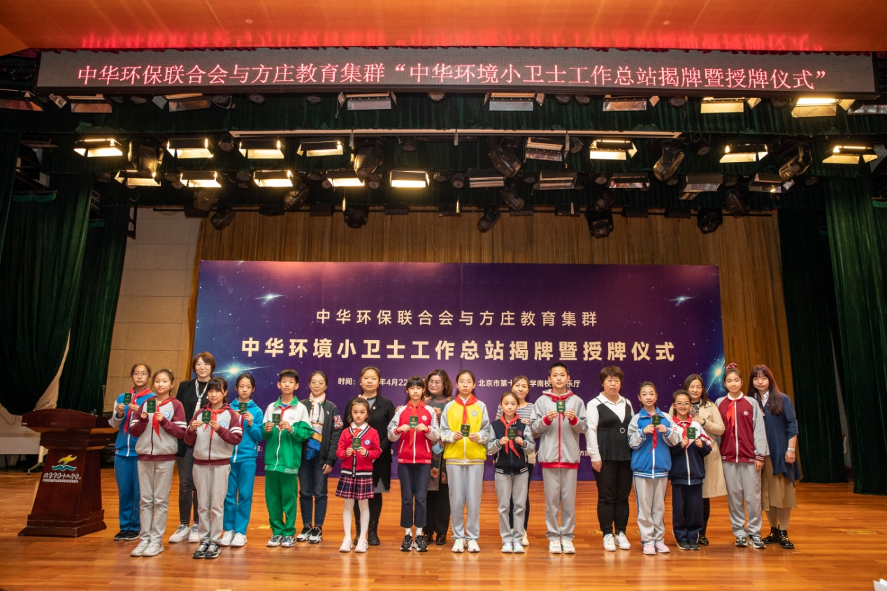 “中华环境小卫士工作总结站揭牌暨授牌仪式”由中华环保联会会主办,北京市丰台区教育委员会作为支持单位全程参与了今天的活动,承办单位是《中华环境》杂志社、中华环境保护基金会小康幸福工程办公室、北京市方庄教育集群以及北京市第十八中学教育集团。