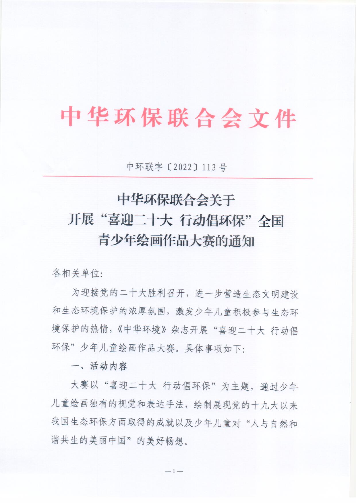 关于开展“喜迎二十大 行动倡环保”全国青少年绘画作品大赛的通知