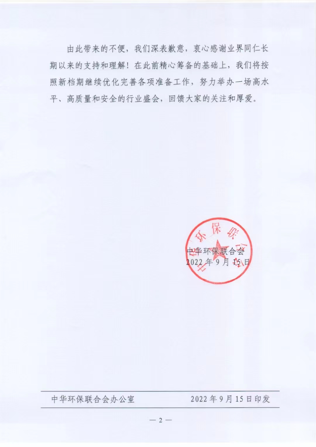 关于改期举办2022气环会·第三届全国挥发性有机物(VOCs)污染防治科技大会暨技术装备博览会及系统同期论坛的通知
