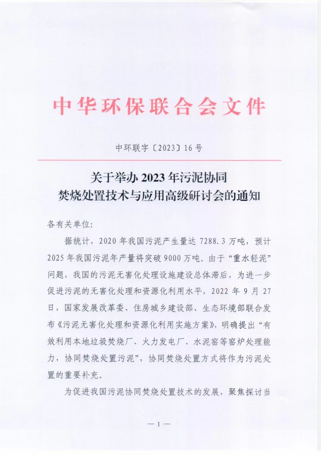 关于举办2023年污泥协同焚烧处置技术与应用高级研讨会的通知