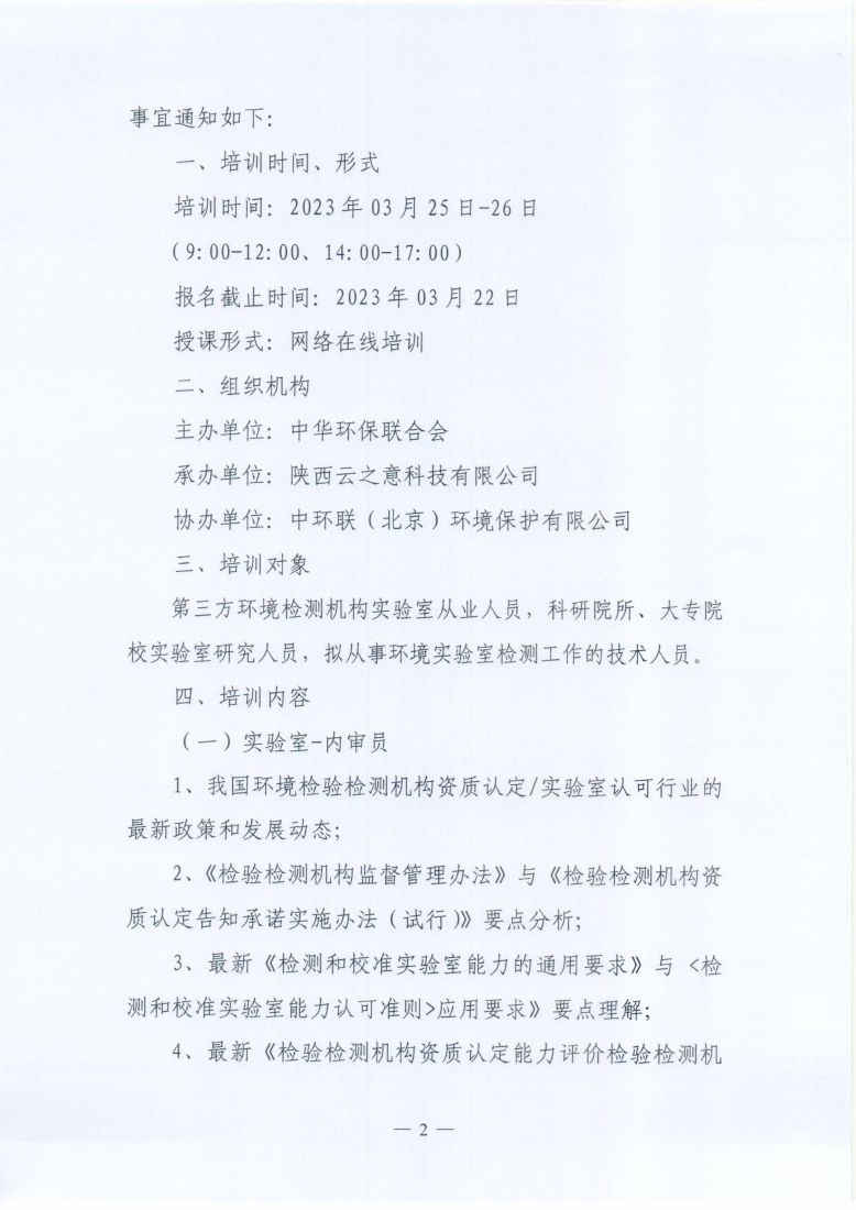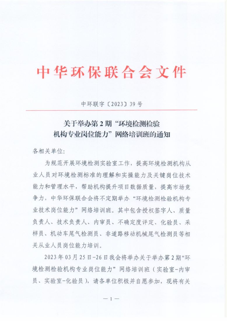 关于举办第2期“环境检测检验机构专业岗位能力”网络培训班的通知