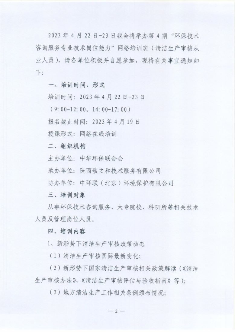 关于举办第4期“环保技术咨询服务专业技术岗位能力”网络培训班的通知