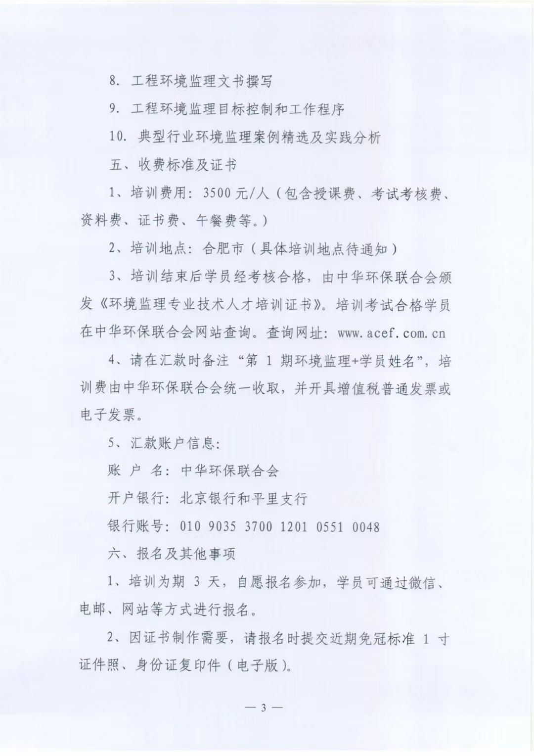 关于举办第1期“环境监理专业技术人员(总监、现场监理)培训班”的通知