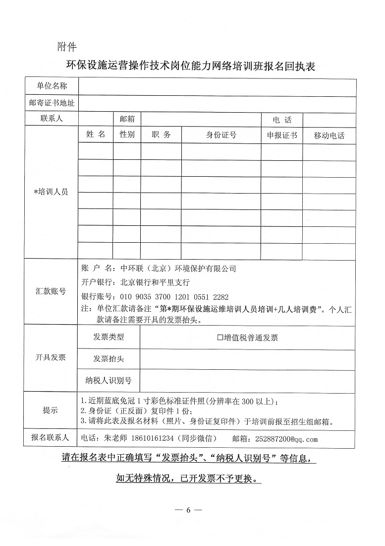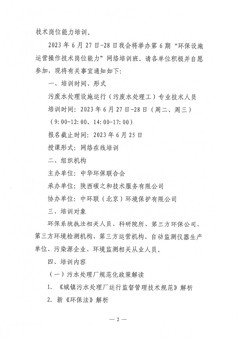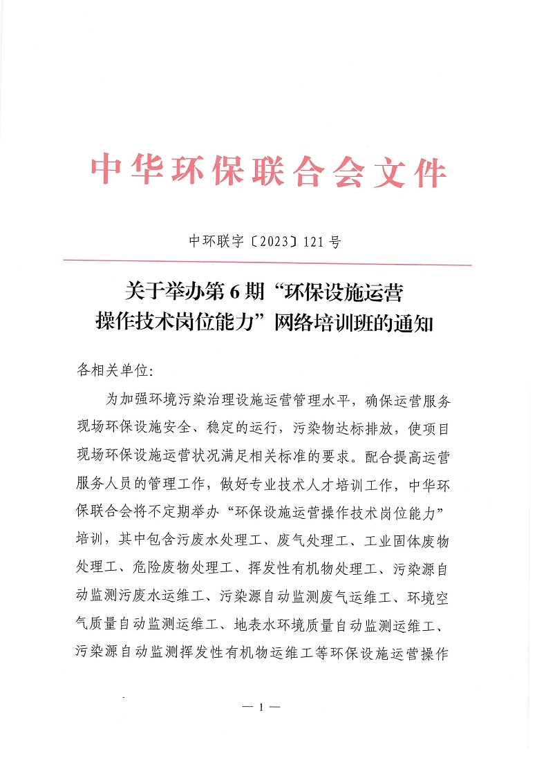 关于举办第6期“环保设施运营操作技术岗位能力”网络培训班的通知
