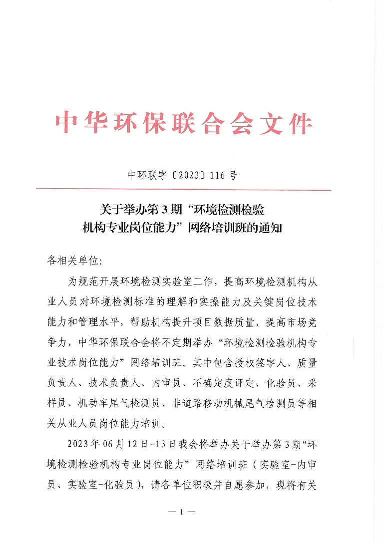 关于举办第3期“环境检测检验机构专业岗位能力”网络培训班的通知