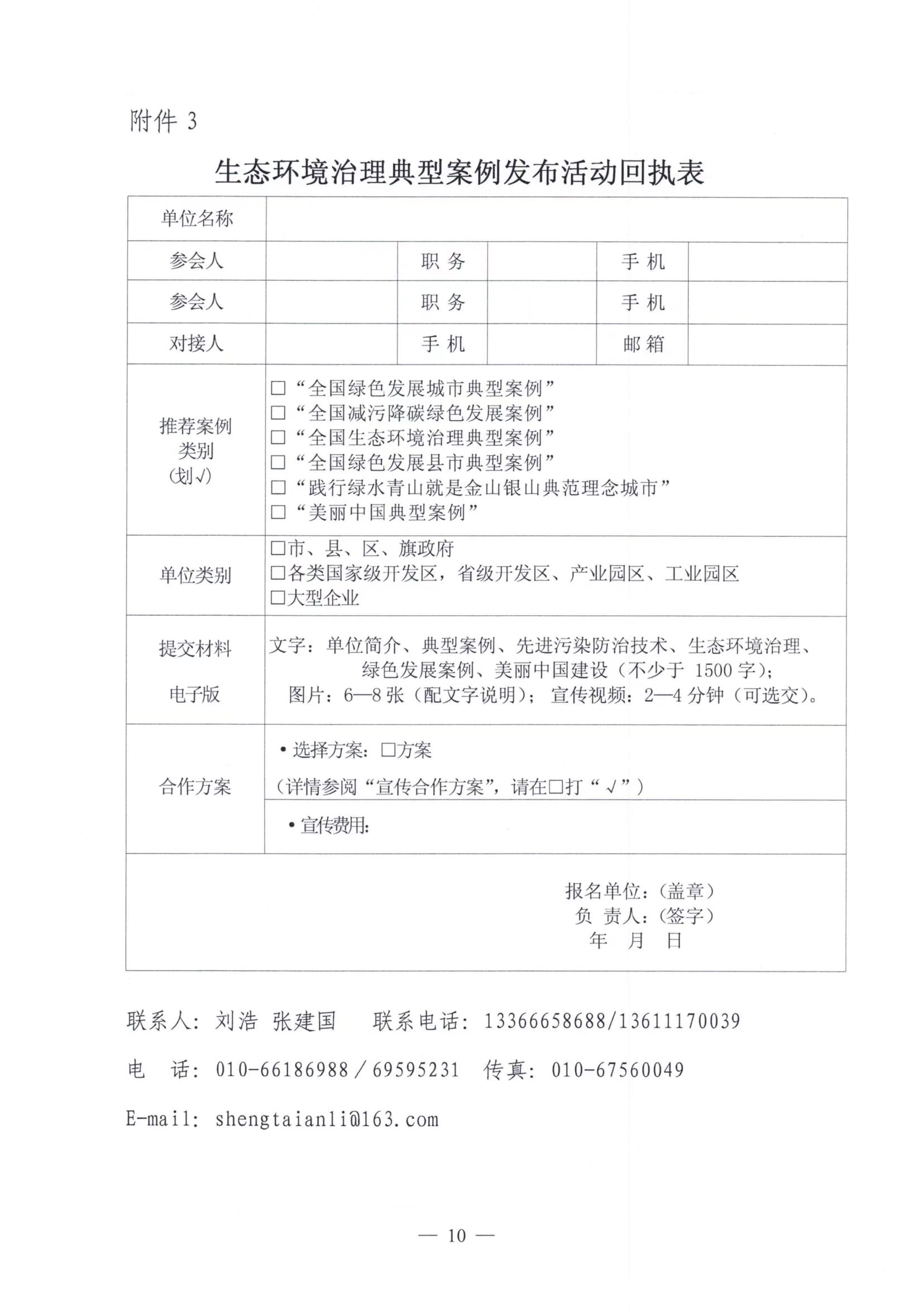2023减污降碳绿色发展峰会暨全国生态环境治理典型案例发布活动回执表