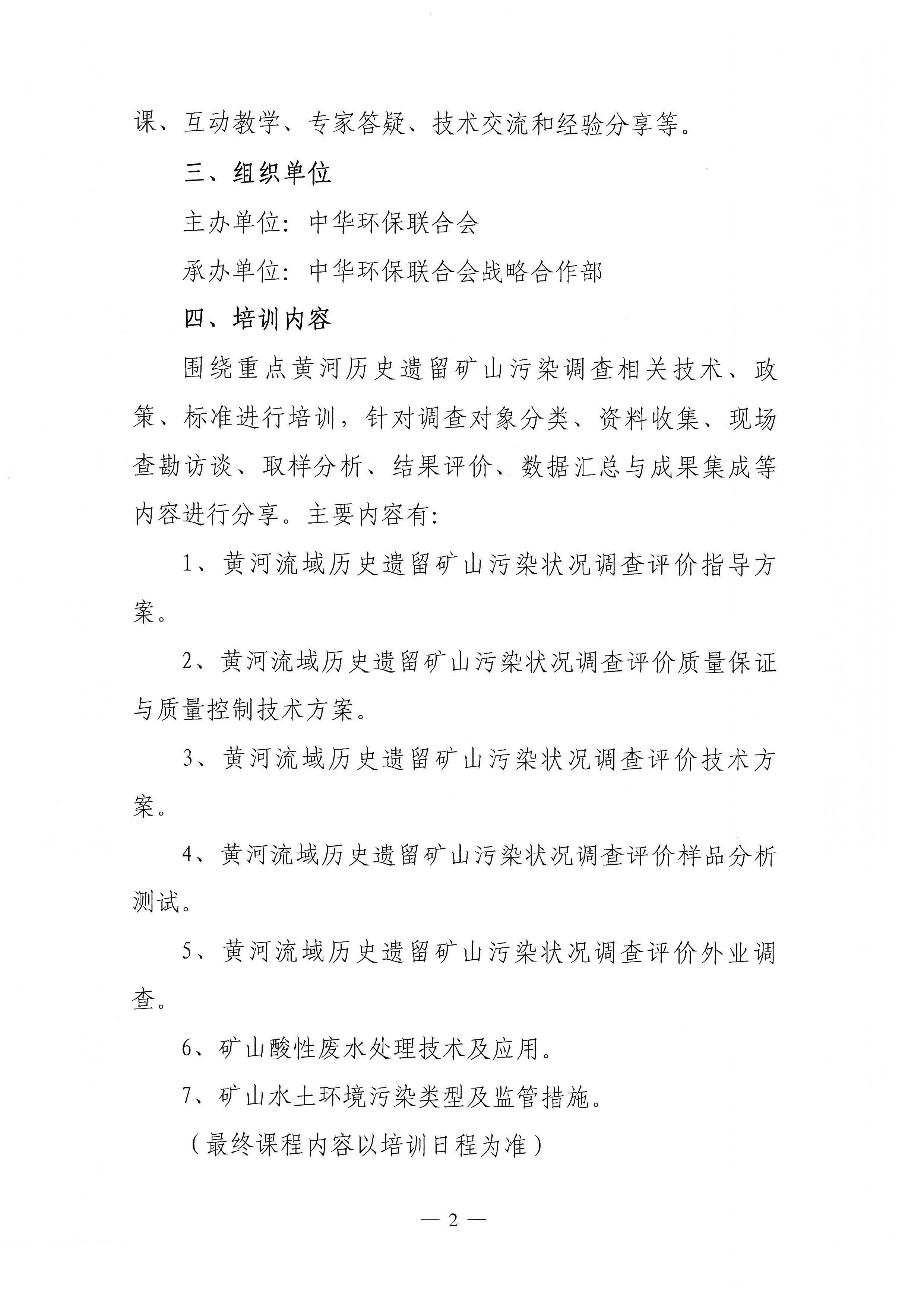 关于举办“2023年黄河流域历史遗留矿山污染状况调查评价培训班”的通知