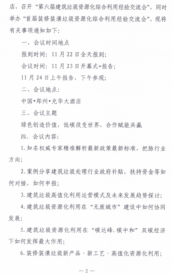 关于召开“第六届建筑垃圾暨首届装修垃圾资源化综合利用经验交流会”的通知