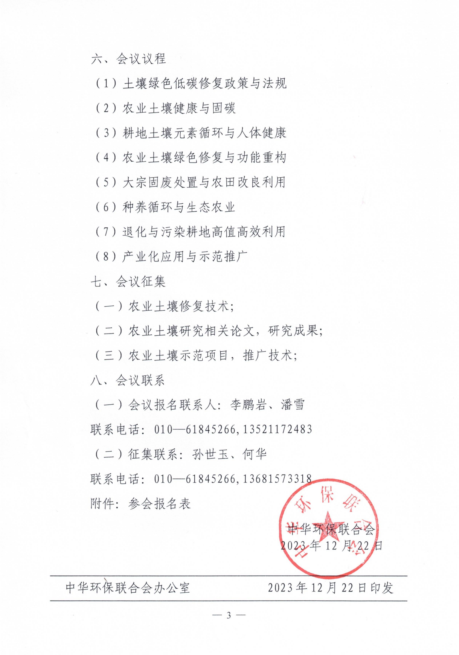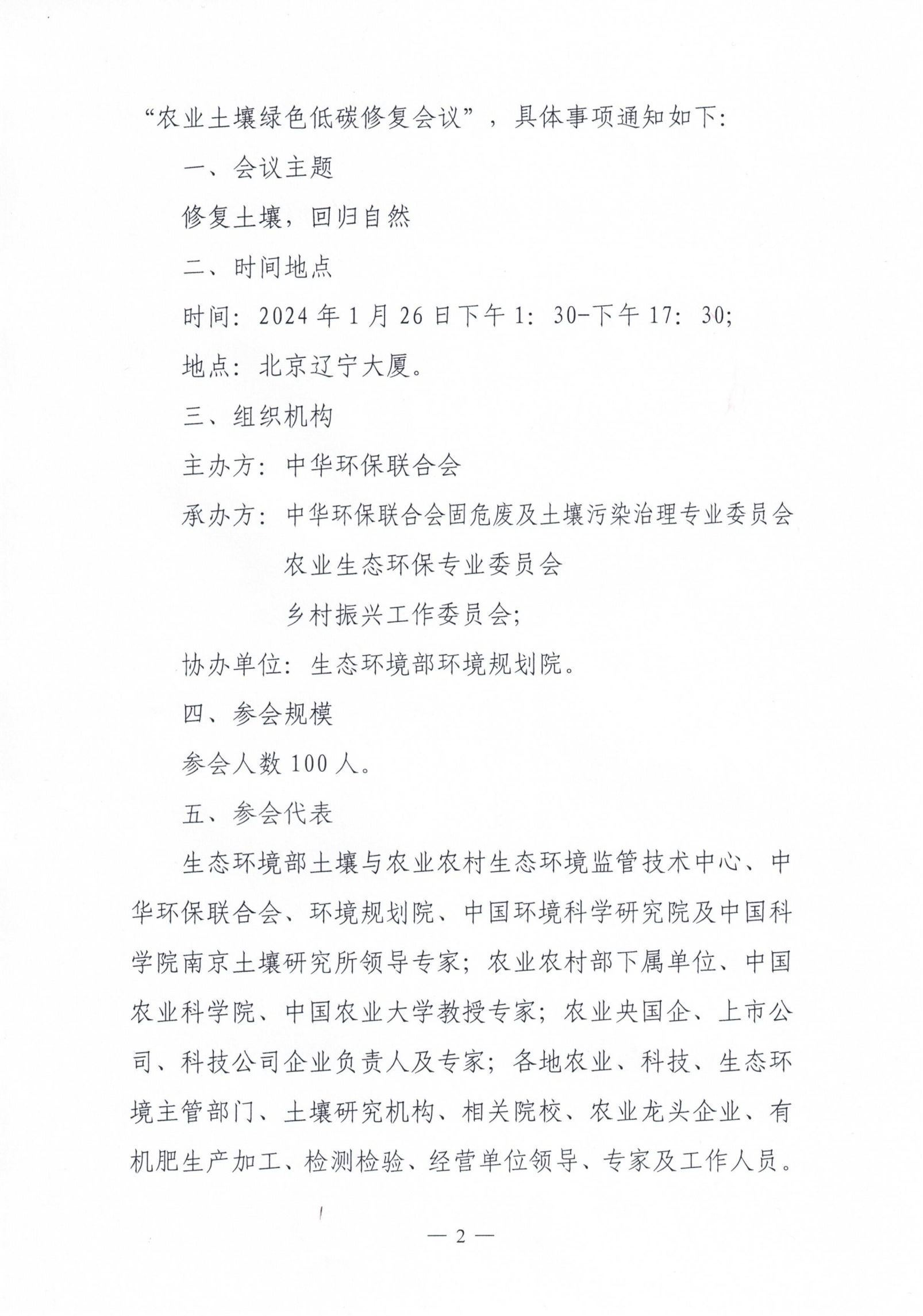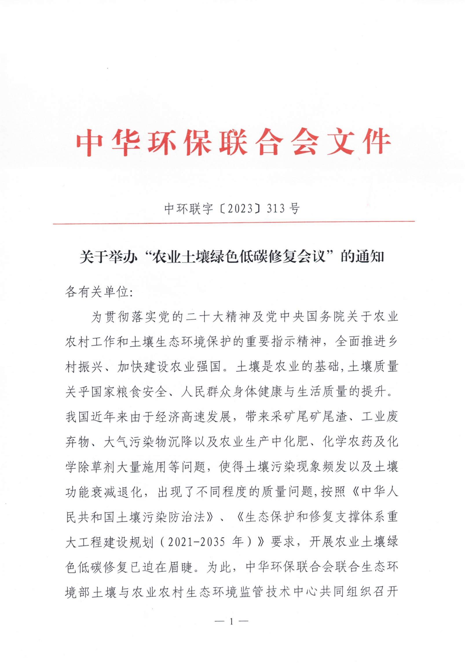 关于举办“农业土壤绿色低碳修复会议”的通知
