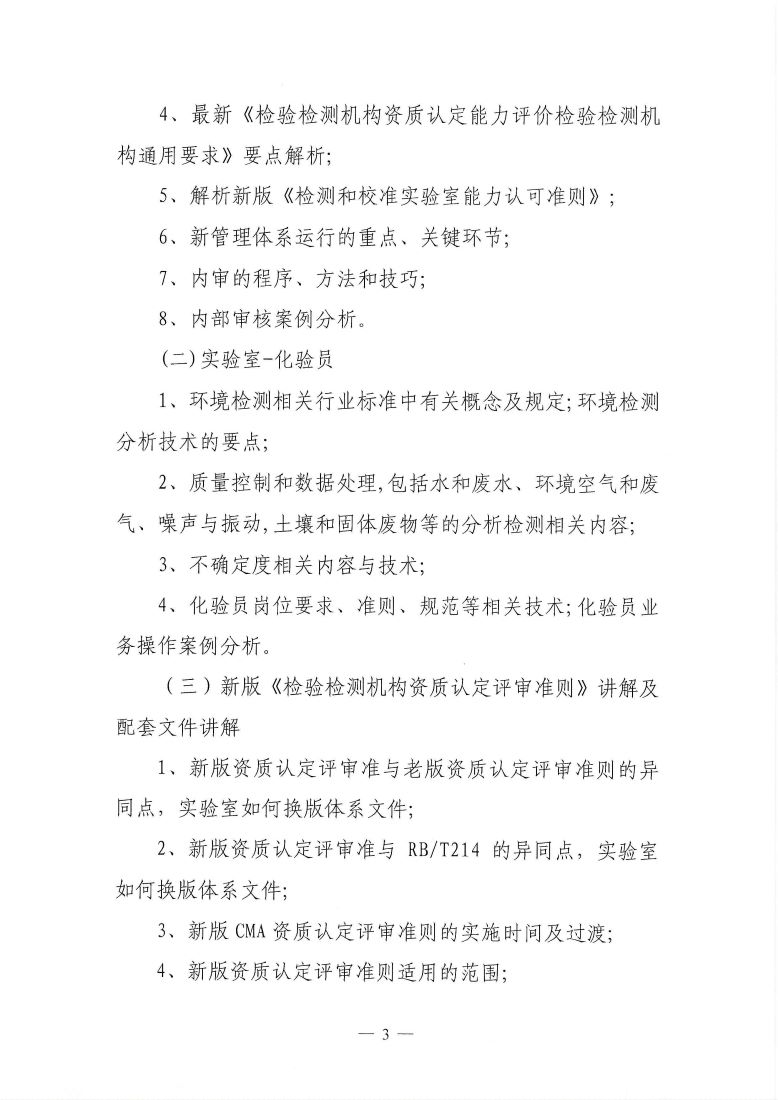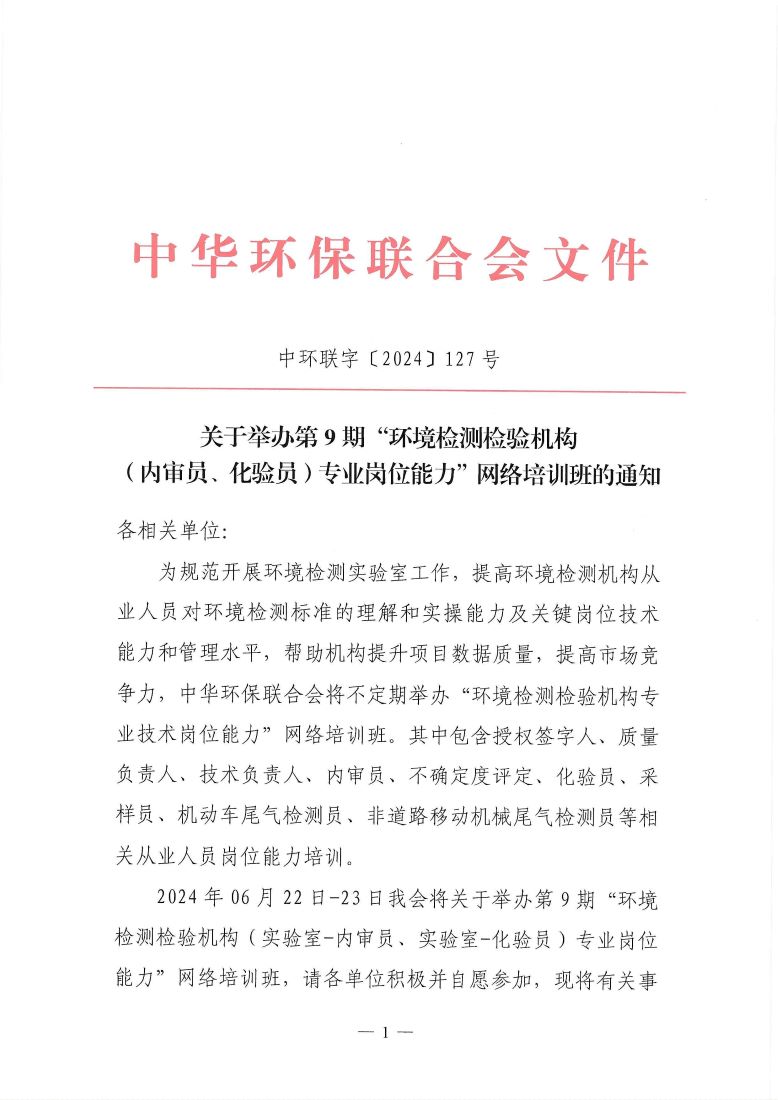 关于举办第9期“环境检测检验机构(内审员、化验员)专业岗位能力”网络培训班的通知