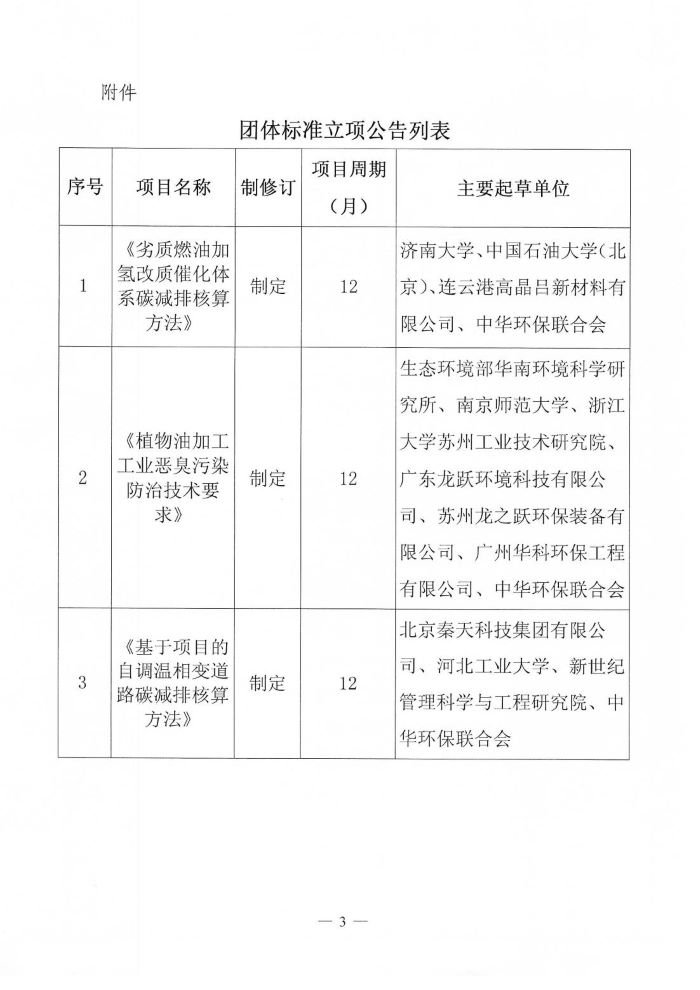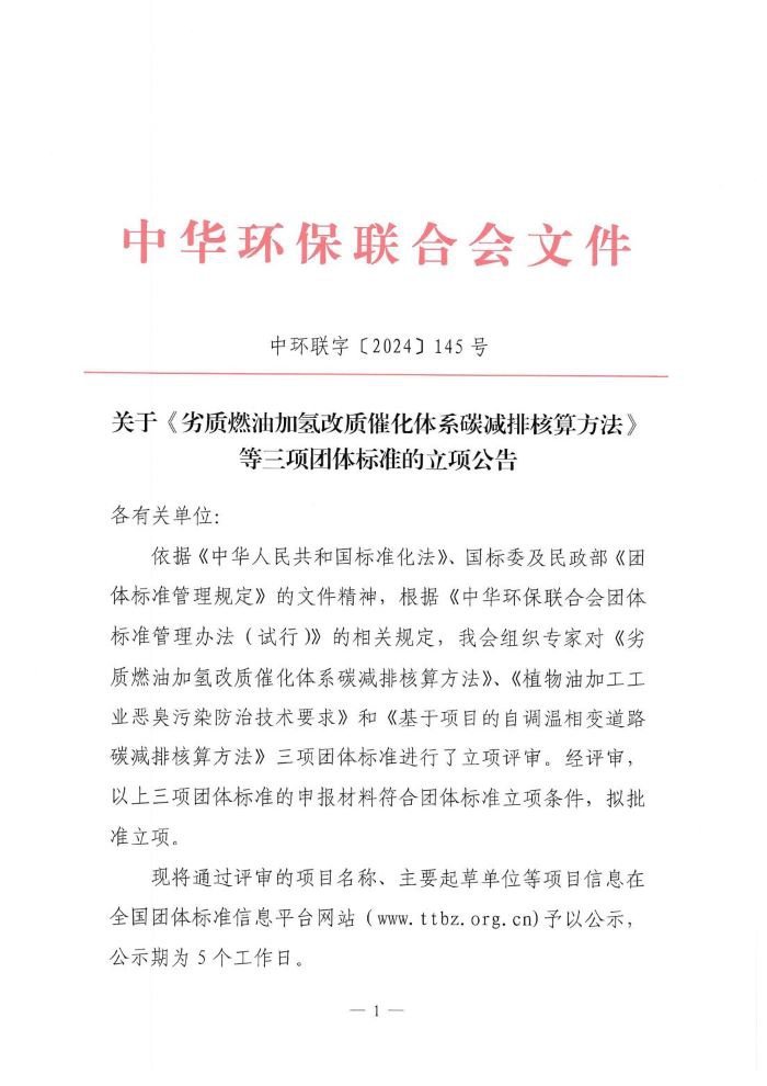 关于《劣质燃油加氢改质催化体系碳减排核算方法》等三项团体标准的立项公告