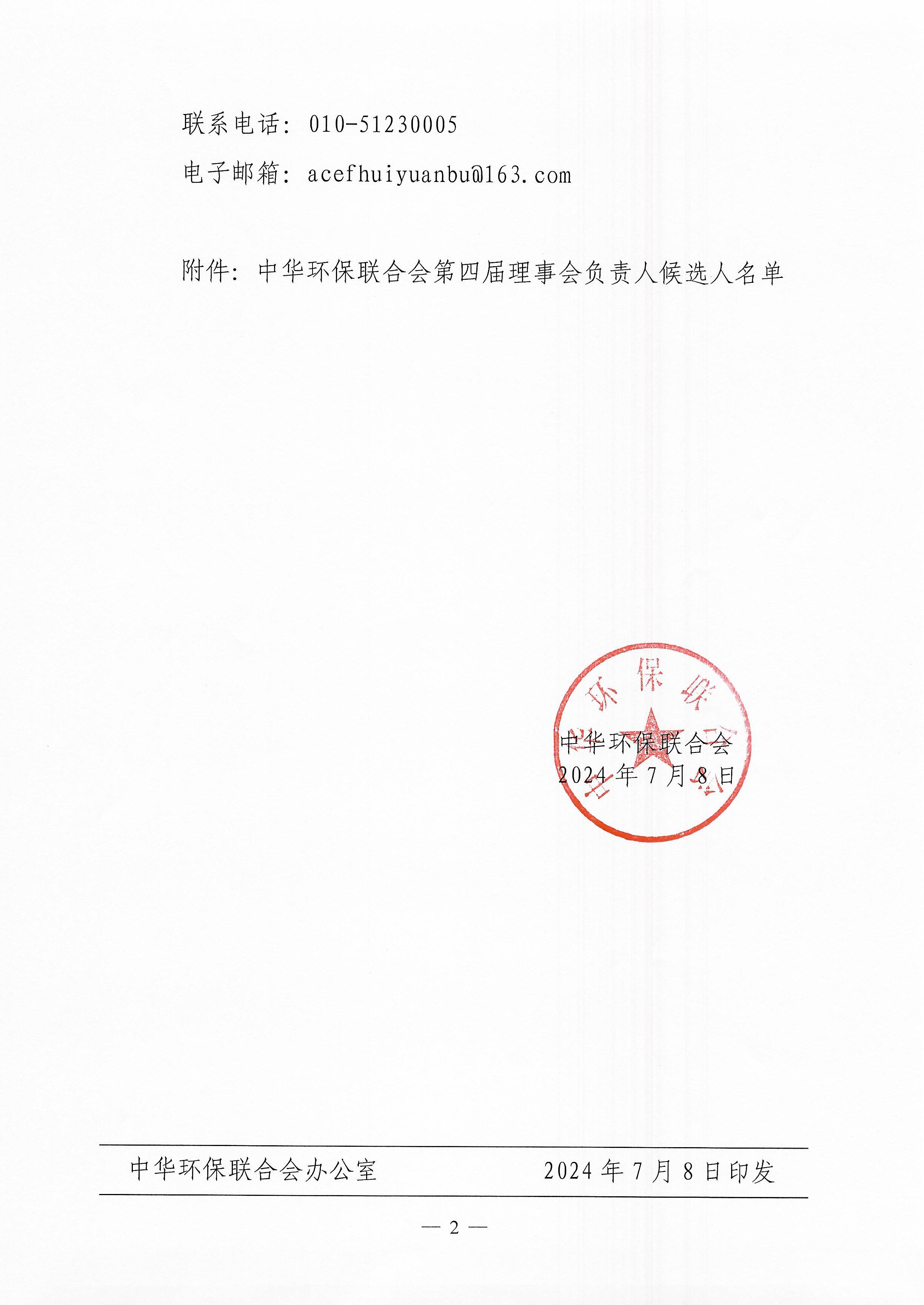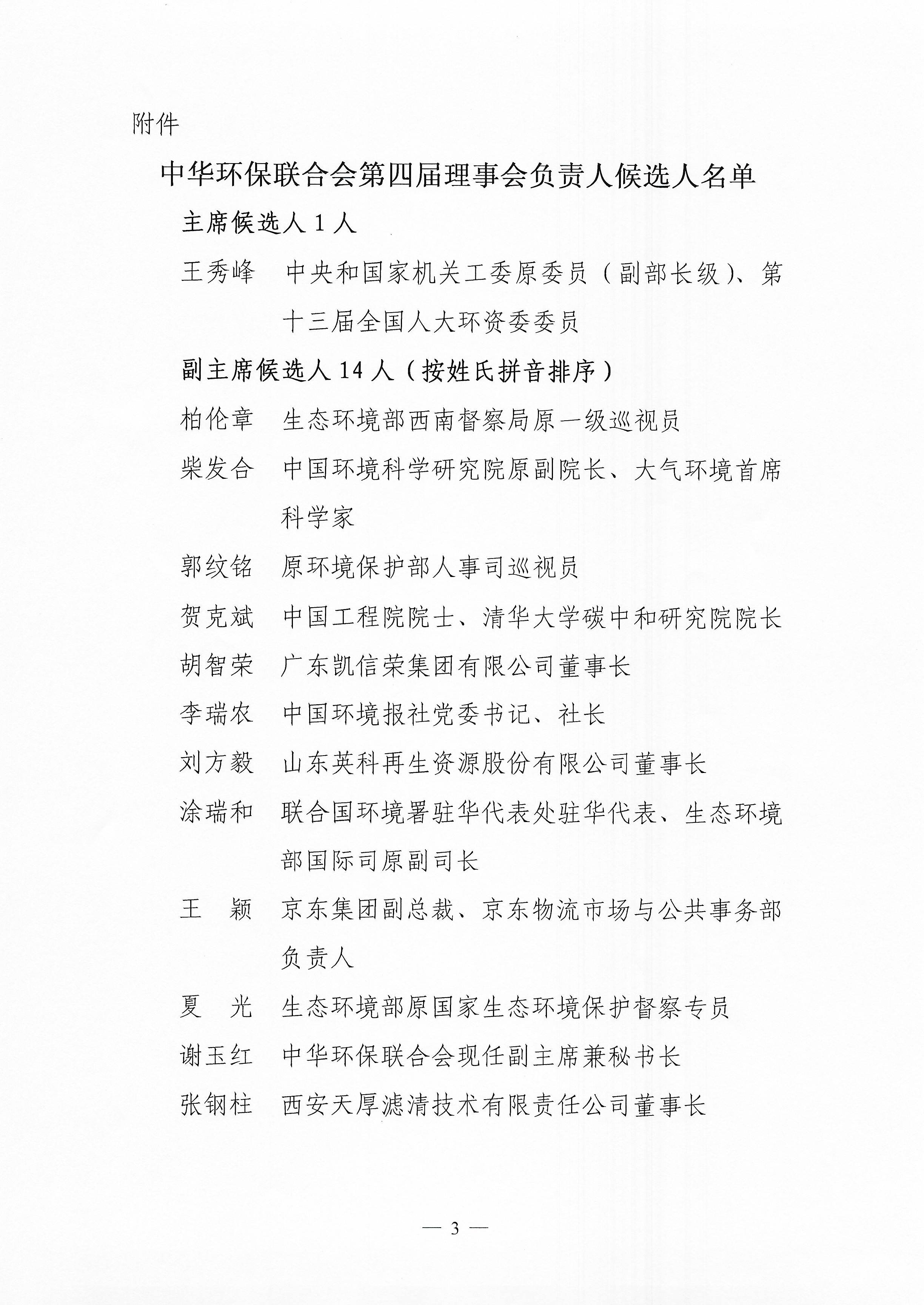 关于中华环保联合会第四届理事会负责人候选人名单的公示