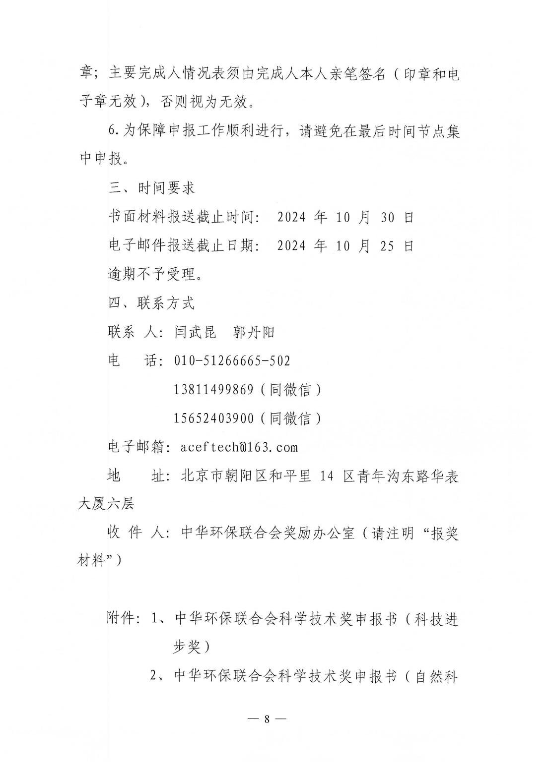 关于开展2024年度中华环保联合会科学技术奖申报工作的通知