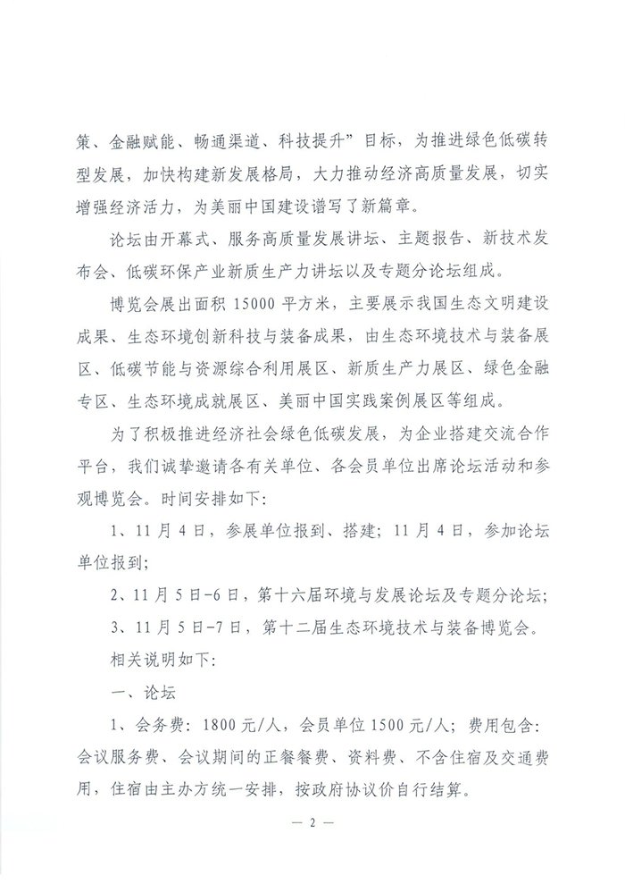 关于第十六届环境与发展论坛暨第十二届生态环境技术与装备博览会邀请函