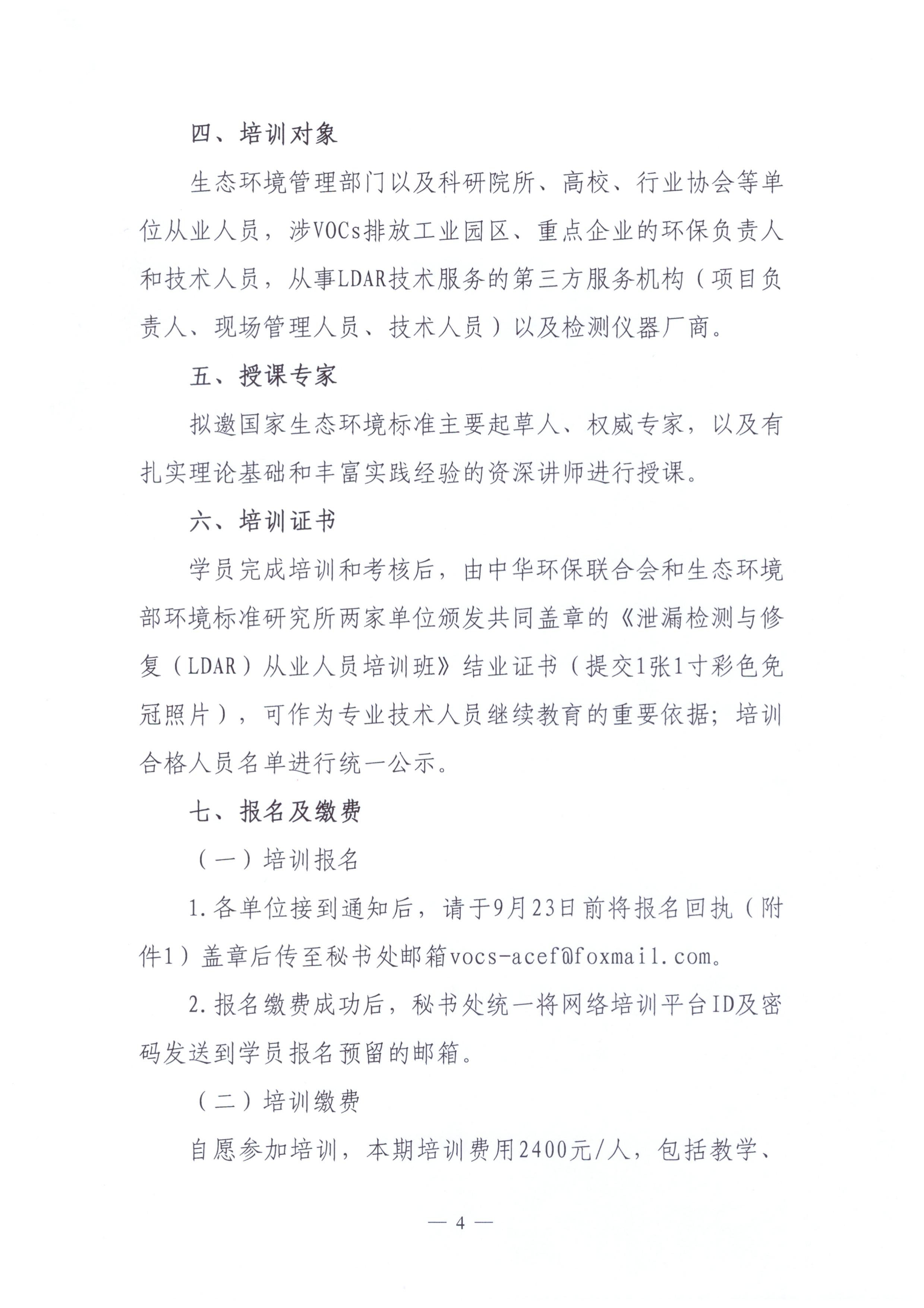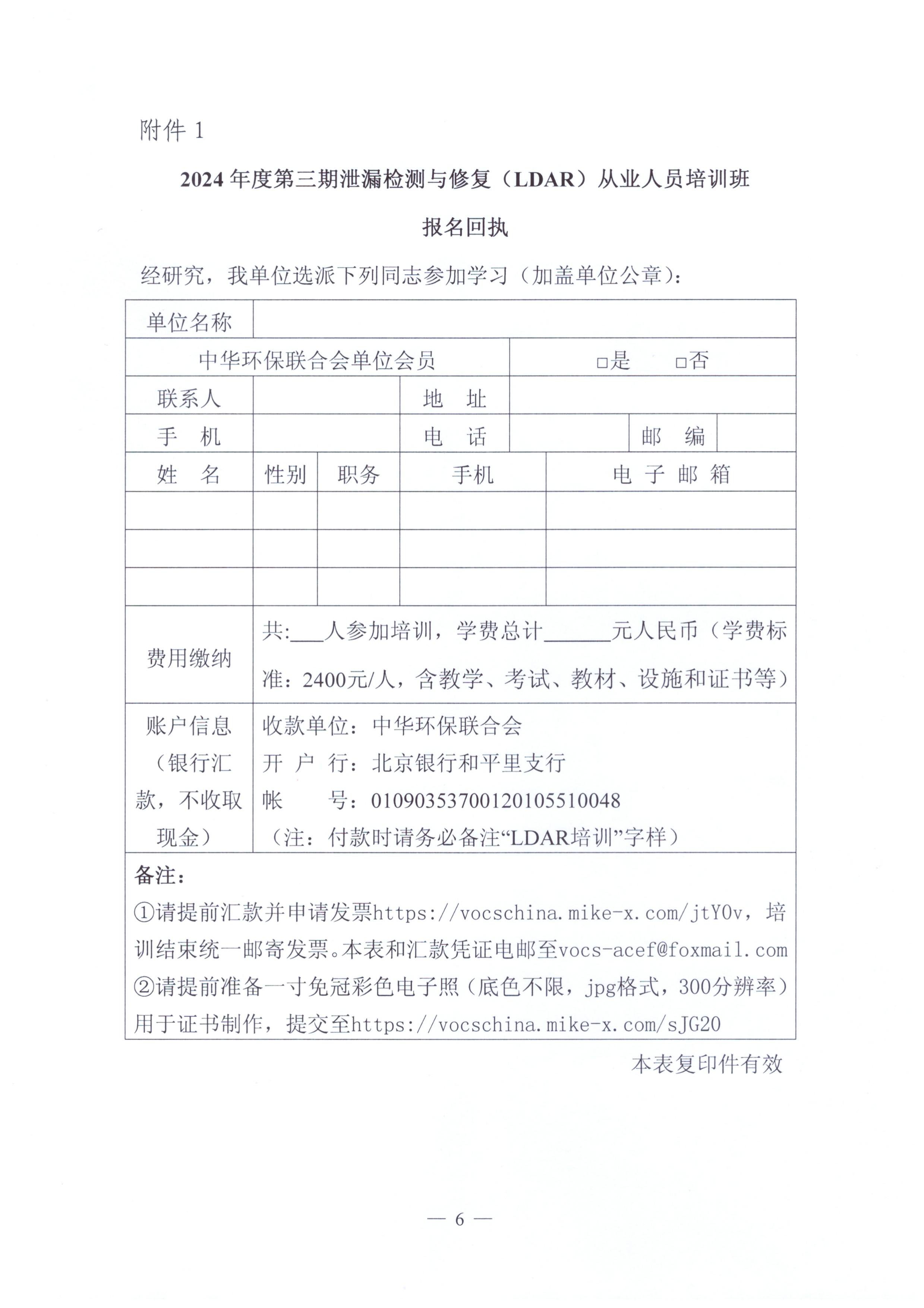 关于举办2024年度第三期泄漏检测与修复(LDAR)从业人员培训班的通知