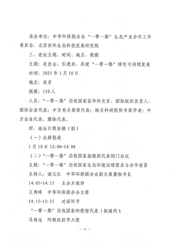 关于邀请参加“一带一路”绿色品牌出海推介活动暨“一带一路”经济与环境合作论坛的函