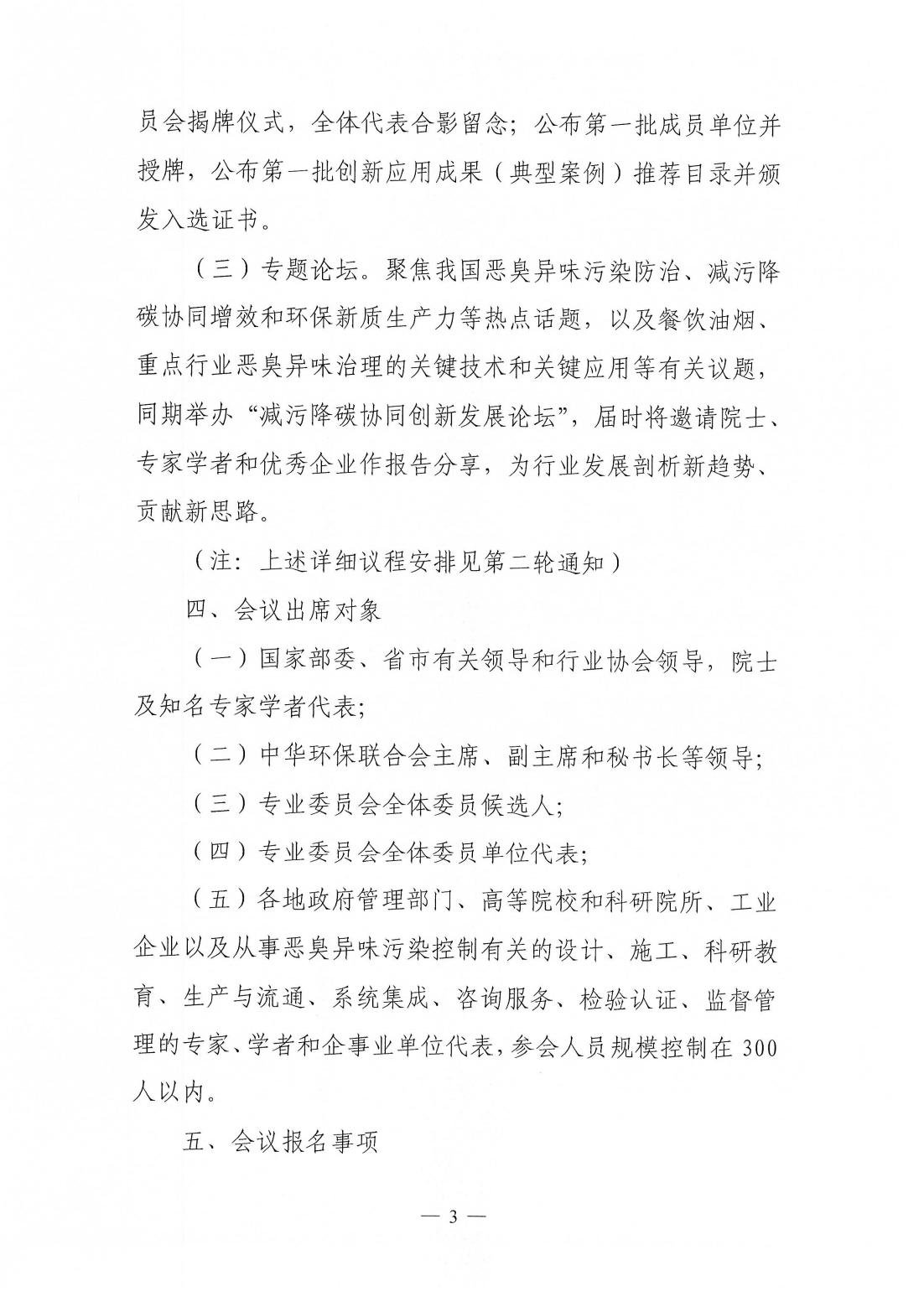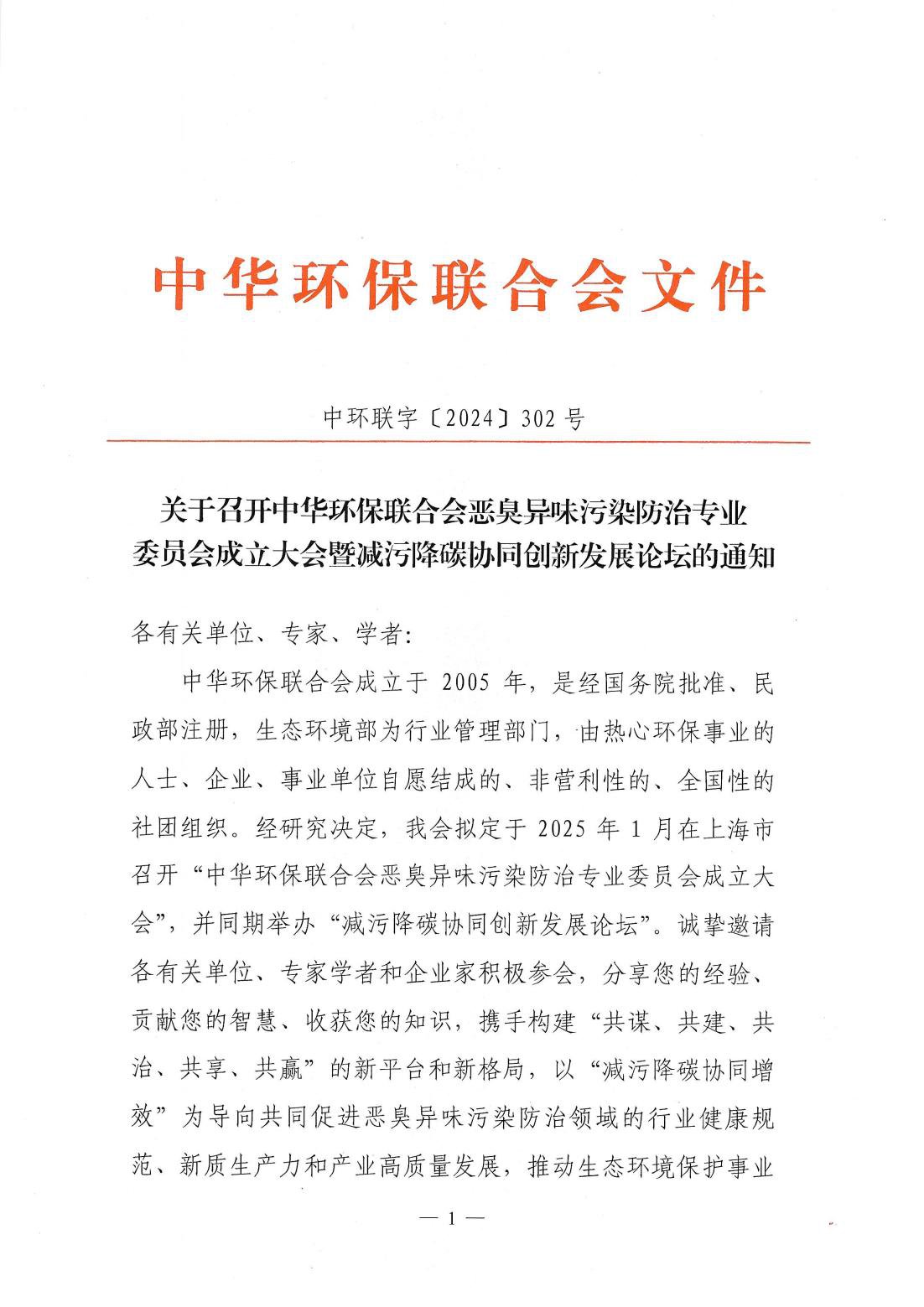 关于召开中华环保联合会恶臭异味污染防治专业委员会成立大会暨减污降碳协同创新发展论坛的通知