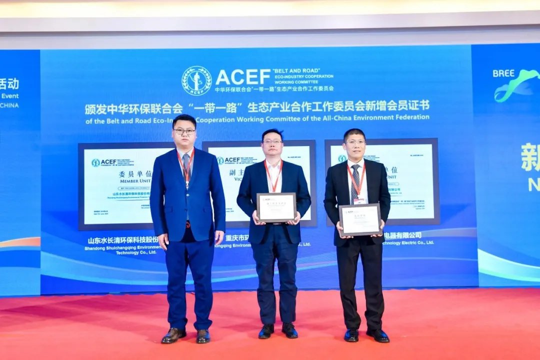 在活动的最后阶段,石祥秘书长向新近加入中华环保联合会“一带一路”生态产业合作工作委员会的会员单位——重庆市环卫集团有限公司、山东水长清环保科技股份有限公司、沈阳华德海泰电器有限公司颁发了会员单位证书。石祥秘书长表示期望这三家新晋会员单位能够充分利用联合会所提供的资源与平台,与现有会员单位携手合作,共同探寻生态环境治理的新途径、新策略,为促进环保事业的进步贡献更多的智慧与力量。