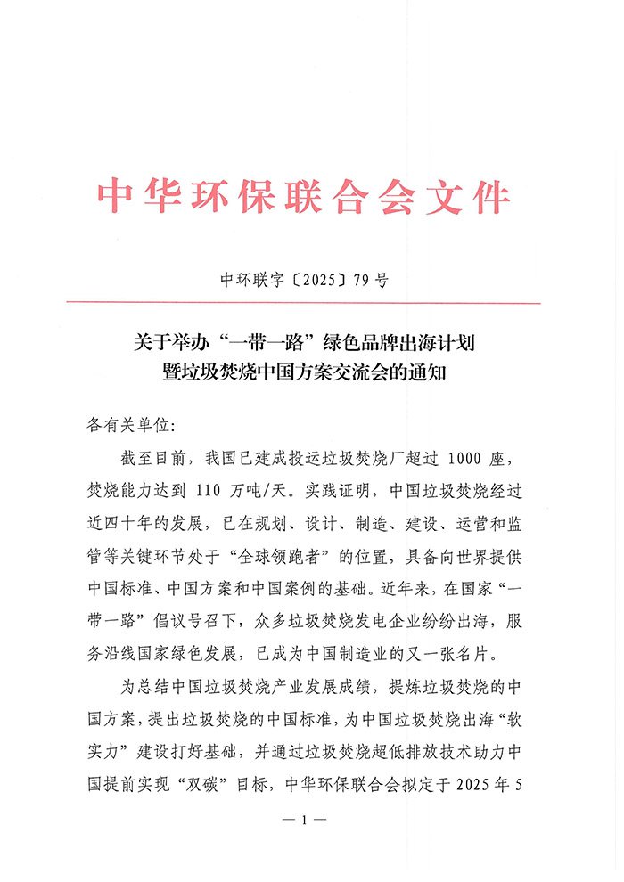 关于举办“一带一路”绿色品牌出海计划暨垃圾焚烧中国方案交流会的通知