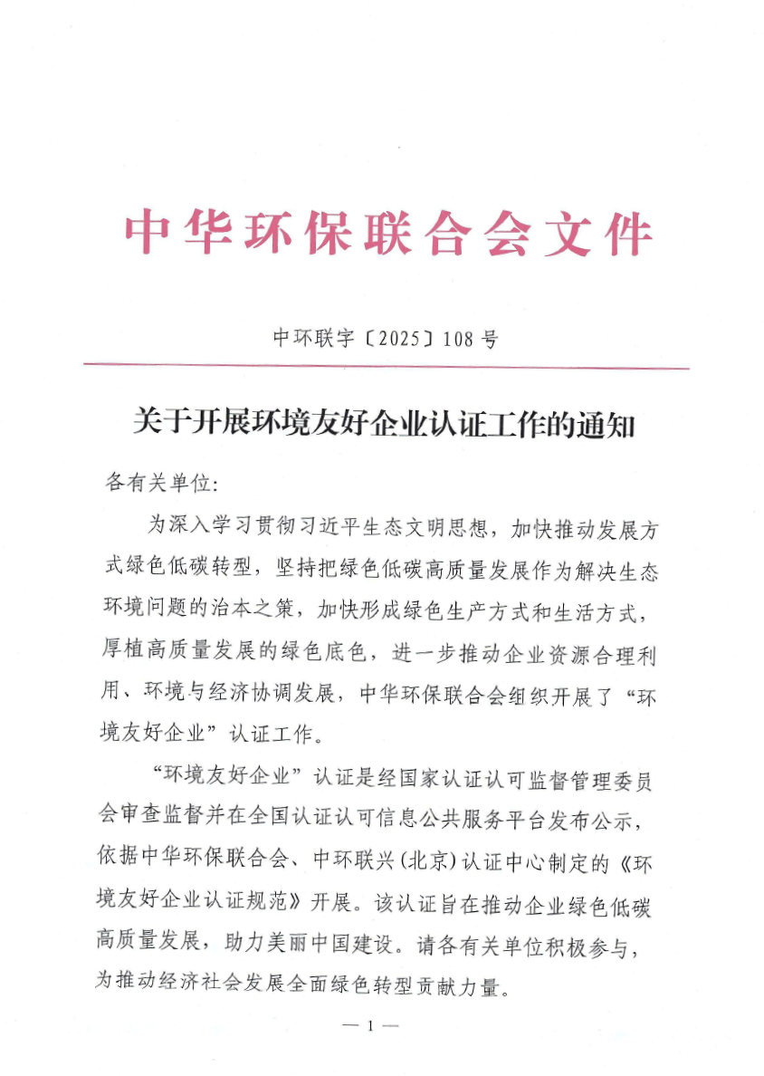 关于开展环境友好企业认证工作的通知