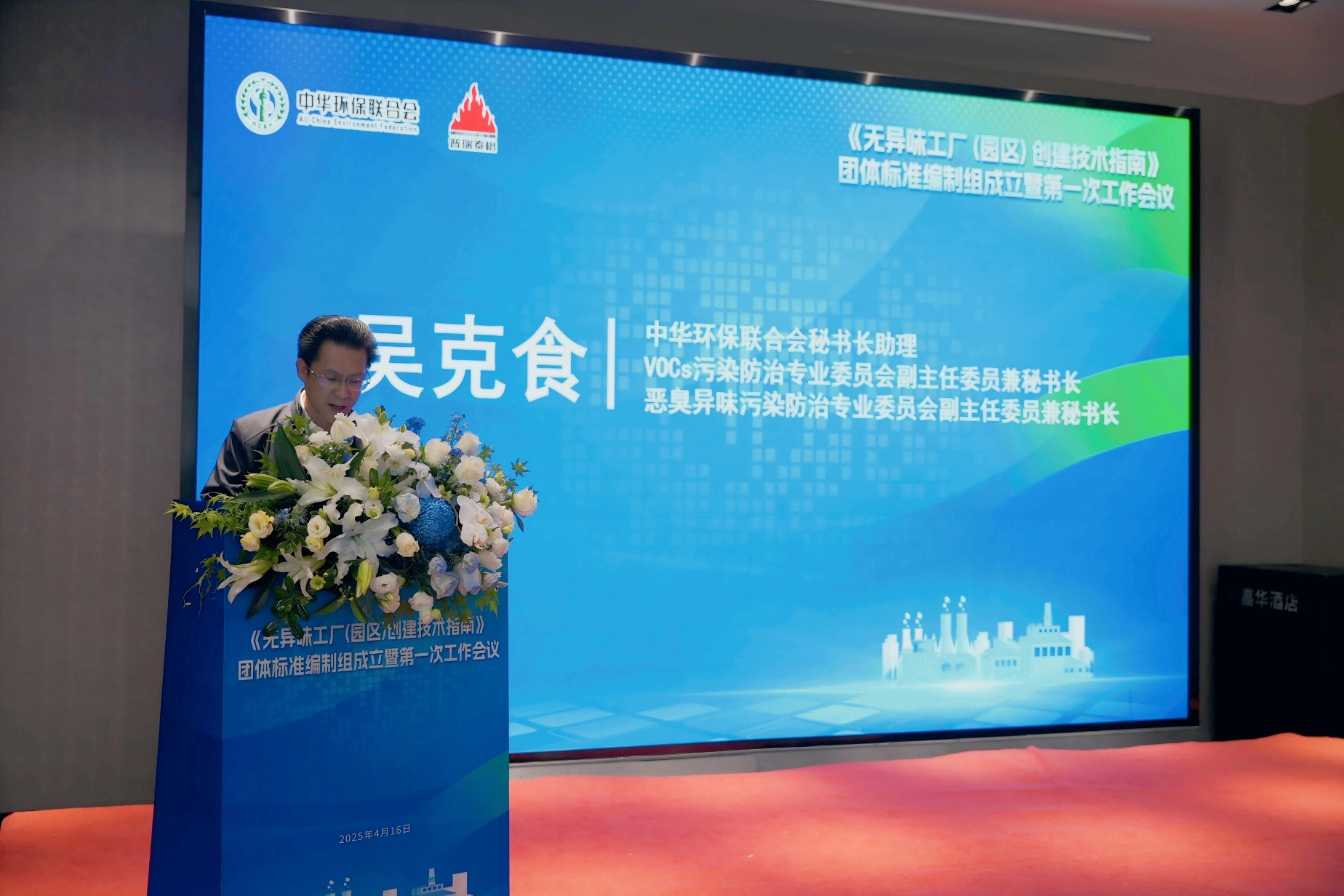 党的二十大报告指出:“推动经济社会发展绿色化、低碳化是实现高质量发展的关键环节。”为贯彻落实这一重要精神,提升我国工厂(园区)环境质量,减少异味污染,助力绿色化、低碳化发展,由中华环保联合会指导,中华环保联合会VOCs污染防治专业委员会和恶臭异味污染防治专业委员会主办,中华环保联合会江苏省办事处和江苏省环保联合会协办,南京普瑞泰格安全设备工程有限公司承办的《无异味工厂(园区)创建技术指南》团体标准(简称《标准》)编制组成立暨第一次工作会议,于2025年4月16日在江苏南京成功召开,提升标准化工作的科学性和实用性。同期举办的“美丽蓝天”绿色生产力调研行(首站)活动进一步加强了行业交流与合作,推动了上下游企事业单位的供需对接和深度融合。