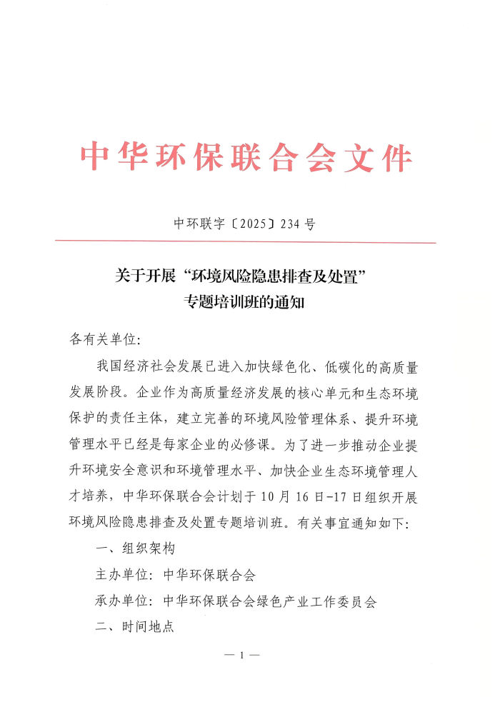 关于开展“环境风险隐患排查及处置”专题培训班的通知