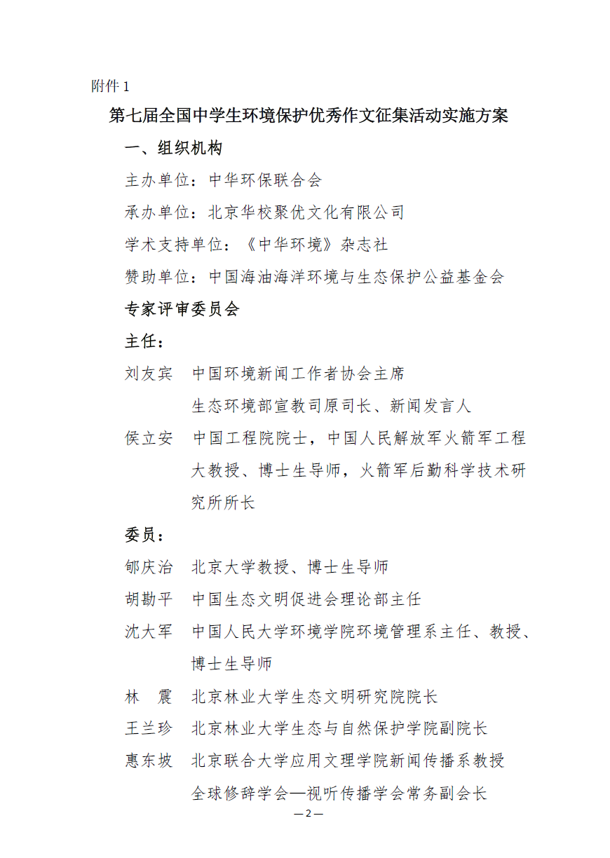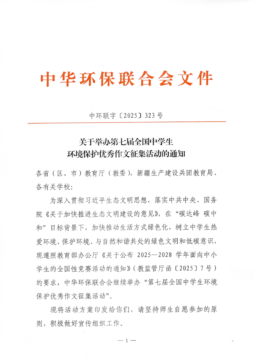 关于举办第七届全国中学生环境保护优秀作文征集活动的通知